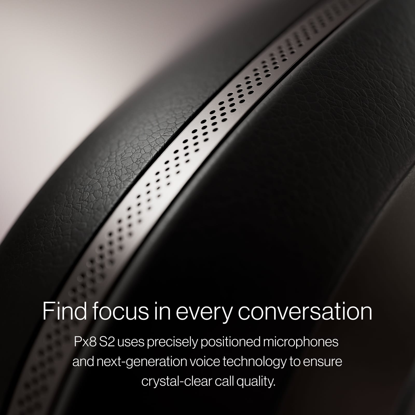 • The Bowers & Wilkins Px8 S2 are our top of the line headphones, with every core element reimagined to deliver no-holds-barred performance. Our new state-of-the-art headphone redefines our flagship design to deliver our top of the line sound quality, maximum comfort and elevated feature-rich listening. Px8 S2’s drive units have been optimised to enhance audio quality while new, slimmer earcups dressed in fine Nappa leather are connected by aluminium arms with exposed cable detailing. The result is exceptional sound from a luxurious and elegant design. With its all-new and upgraded technologies, Px8 S2 is engineered for the discerning listener. Eight microphones and our powerful, proprietary active noise cancellation banish outside intrusions, making listening and taking calls even more precise. The new Px8 S2. Hear True.