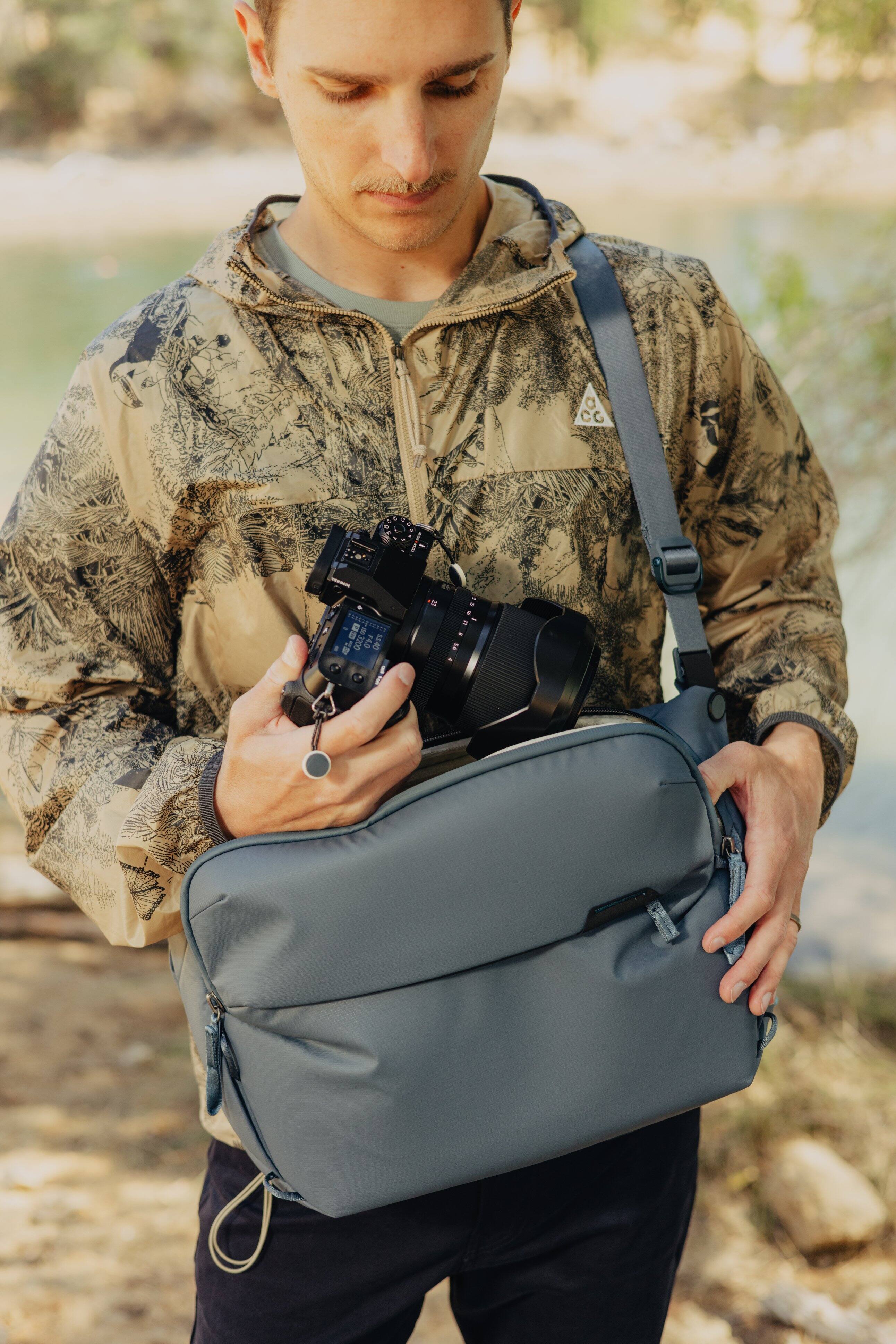 • The smallest, lightest bag in our Everyday Line, the Everyday Sling comes in 3L, 6L, and 10L sizes so you can pick the perfect companion for minimalist, on-the-go carry of everyday or photo gear. Different sizes work for a range of creative setups, from a rangefinder camera to a pro DSLR, lenses, and laptop. The Sling’s padded cross-body strap features a quick-adjuster that you can loosen when accessing gear and tighten when actively hiking or biking. A weatherproof UltraZip provides quick, expansive access and FlexFold dividers allow instantly customizable organization and protection. Internal stretchy pockets for small items and a dedicated tablet sleeve (6L and 10L only). A weatherproof 100% recycled 400D shell keeps your gear safe. Now in its 2nd generation, v2 boasts aesthetic and functional updates based on feedback from thousands of passionate customers. Pick your size: the 3L bag is designed for a single mirrorless body/lens. The 6L can fit a DSLR. The 10L can fit a small kit, and is an ideal minimalist 13" laptop bag. All bags are Fair Trade Certified and 100% carbon neutral.