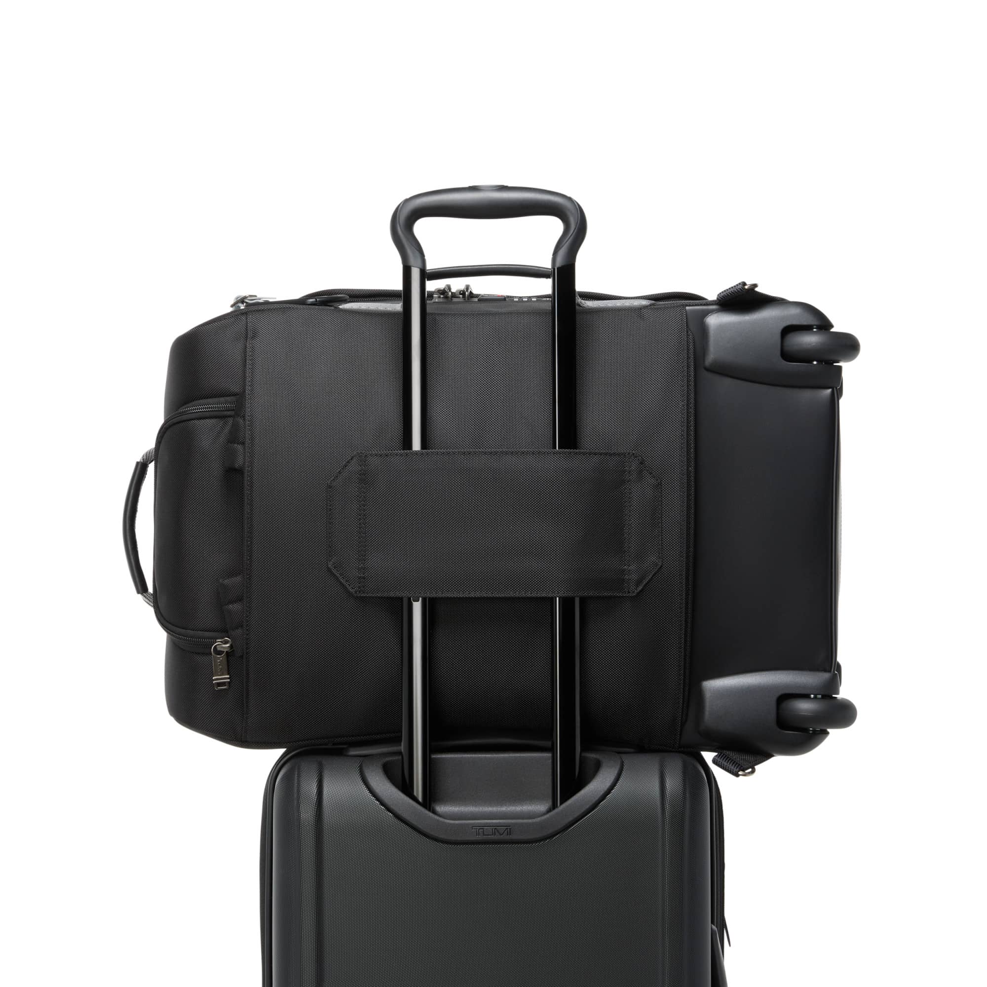• Versatile, durable, and built for any journey, the TUMI Alpha Bravo Wheeled Carry-On Duffel blends rugged utility with premium travel design. This multifunctional bag offers multiple ways to carry, including wheels for rolling, backpack straps for hands-free travel, and leather-accented handles for a sleek grip. Its interior is equipped with smart organizational features and TUMI’s signature Tracer® to help locate lost items. Thoughtful design elements like a retractable wheel cover, integrated TSA lock, and compatibility with select TUMI+ accessories make this carry-on the ideal choice for business, adventure, or daily travel.