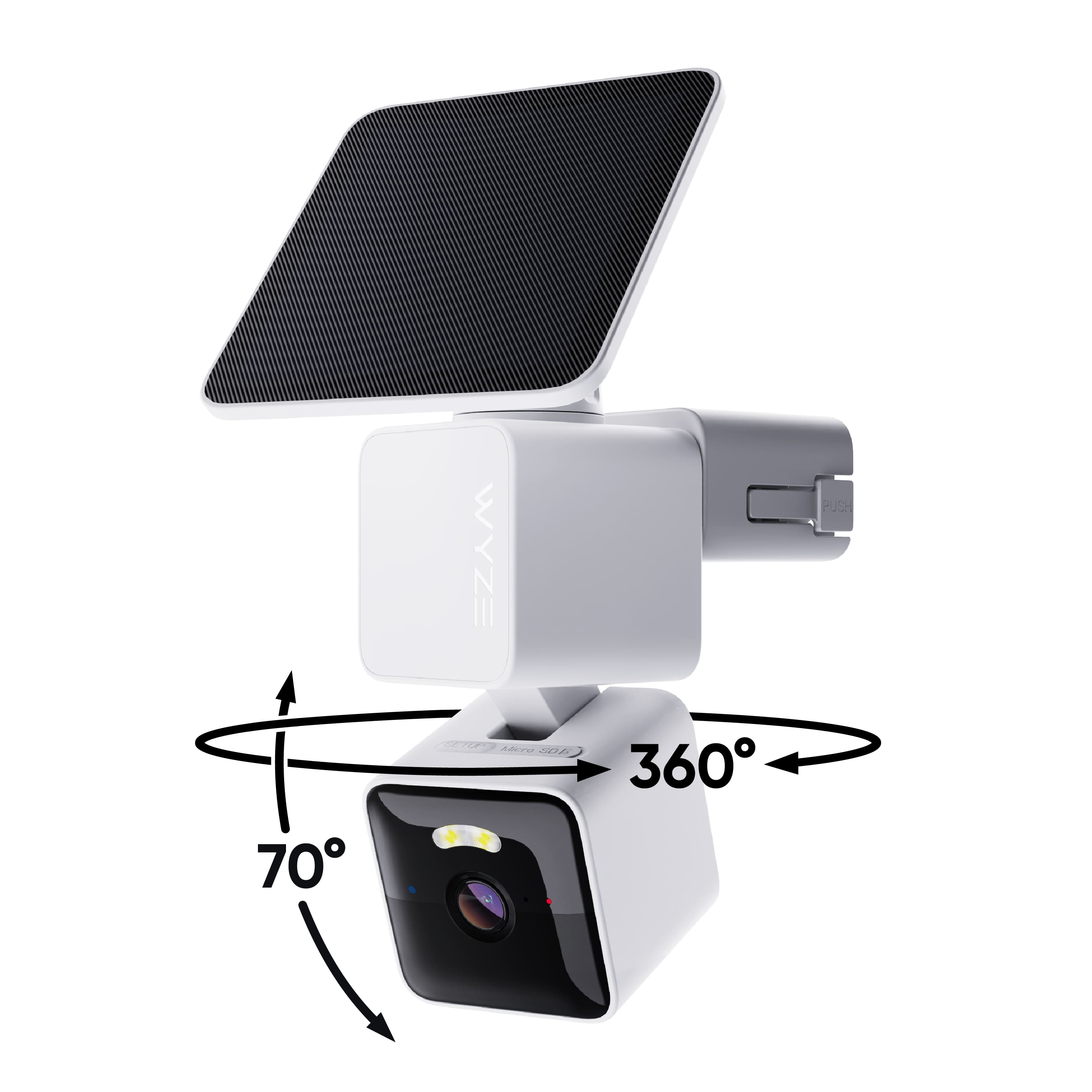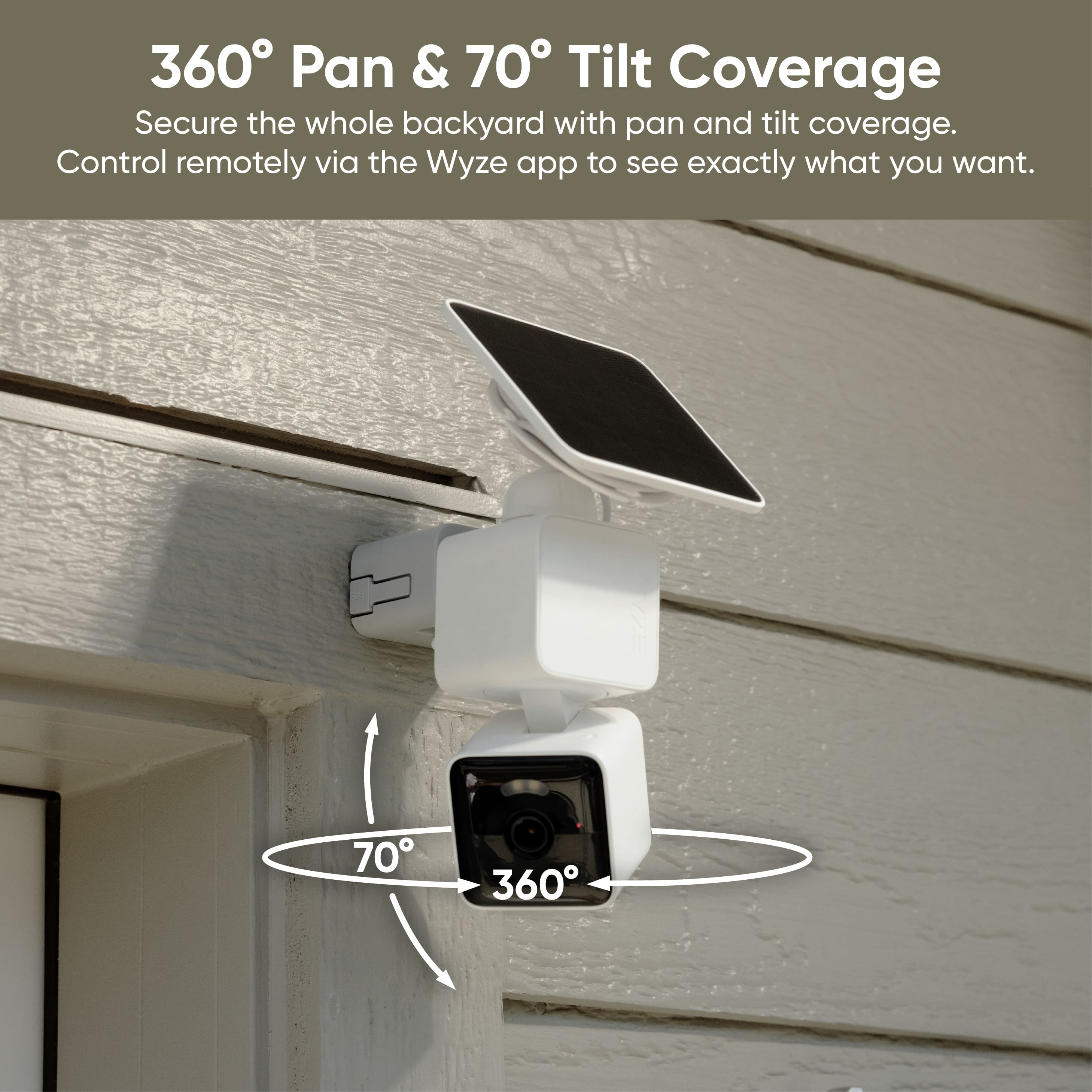 • Wyze Solar Cam Pan is a revolutionary solar-powered, truly wire-free security camera with an integrated solar panel, delivering mount-anywhere versatility and a maintenance-free outdoor surveillance experience. Say goodbye to battery swaps and charging downtime. Featuring full 360° pan-and-tilt coverage, smart AI person tracking, crystal-clear 2K resolution, color night vision, and a motion-activated spotlight, Wyze Solar Cam Pan is the ultimate outdoor security solution, bringing you peace of mind all year long with effortless installation and clean, sustainable solar energy.