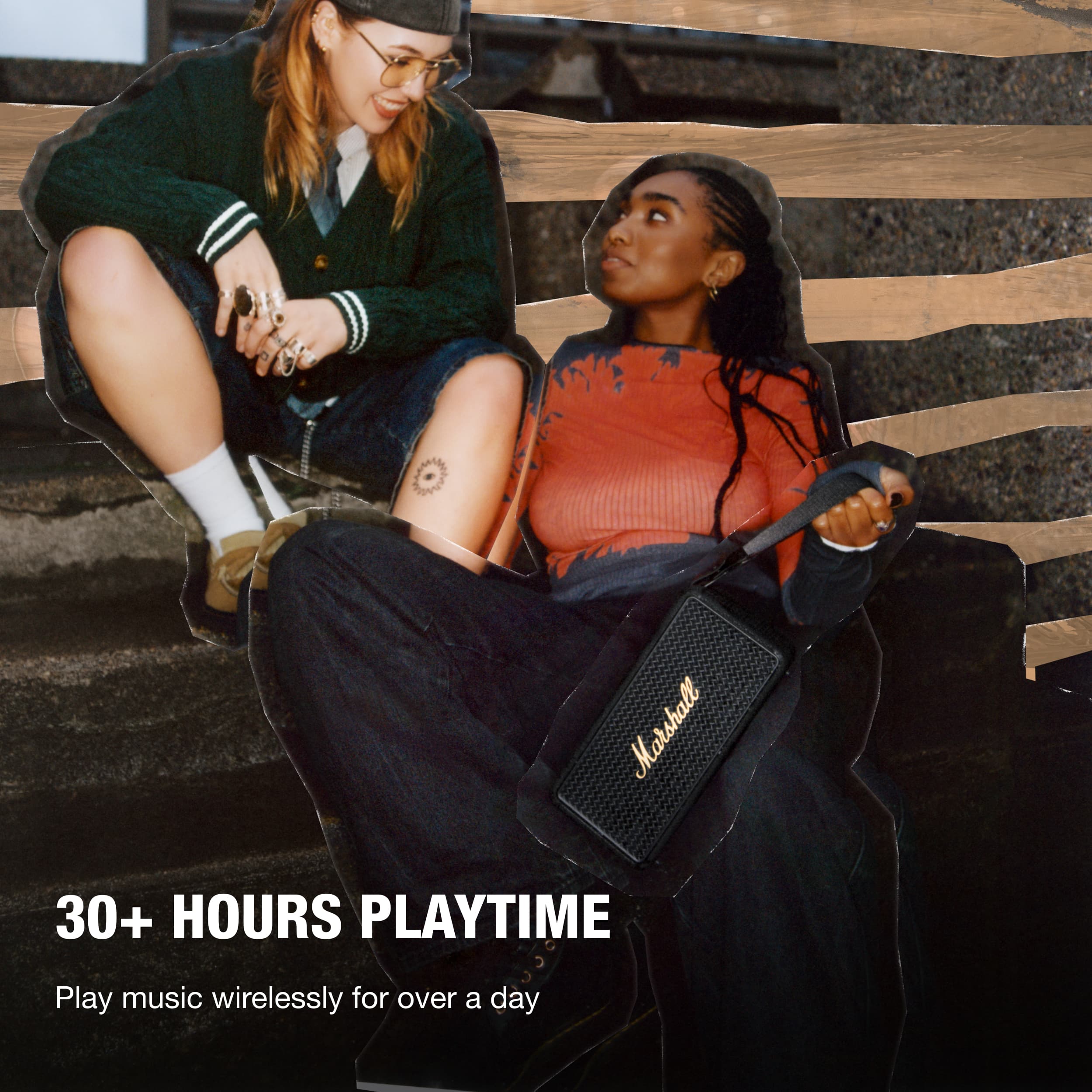 • Put your playlist through its paces. Featuring 30+ hours of portable playtime and a durable build, Middleton II prefers life on the road. With 360° sound thanks to True Stereophonic, you won’t miss a beat from anywhere you stand. Adjusting the bass and treble is also simple thanks to the Marshall Bluetooth app and tactile controls on the top panel of your speaker.