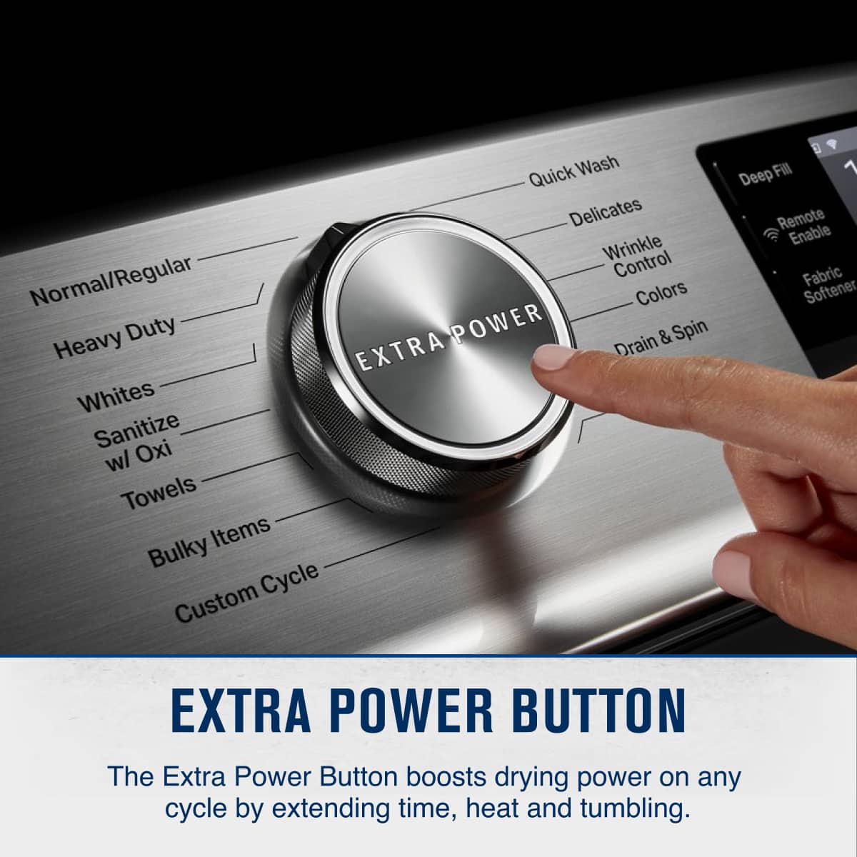 • Get the heavy-duty washing machine that delivers powerful cleaning driven by the Heavy Duty cycle with Extra Power button. The Extra Power button boosts stain fighting on any wash cycle, including the Quick Wash cycle. Optional smart washer features such as remote start and cycle notifications help you efficiently manage laundry from anywhere.