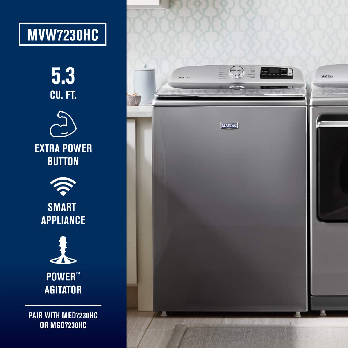 • Maytag - 5.2 Cu. Ft. High Efficiency Smart Top Load Washer with Extra Power Button - Metallic Slate