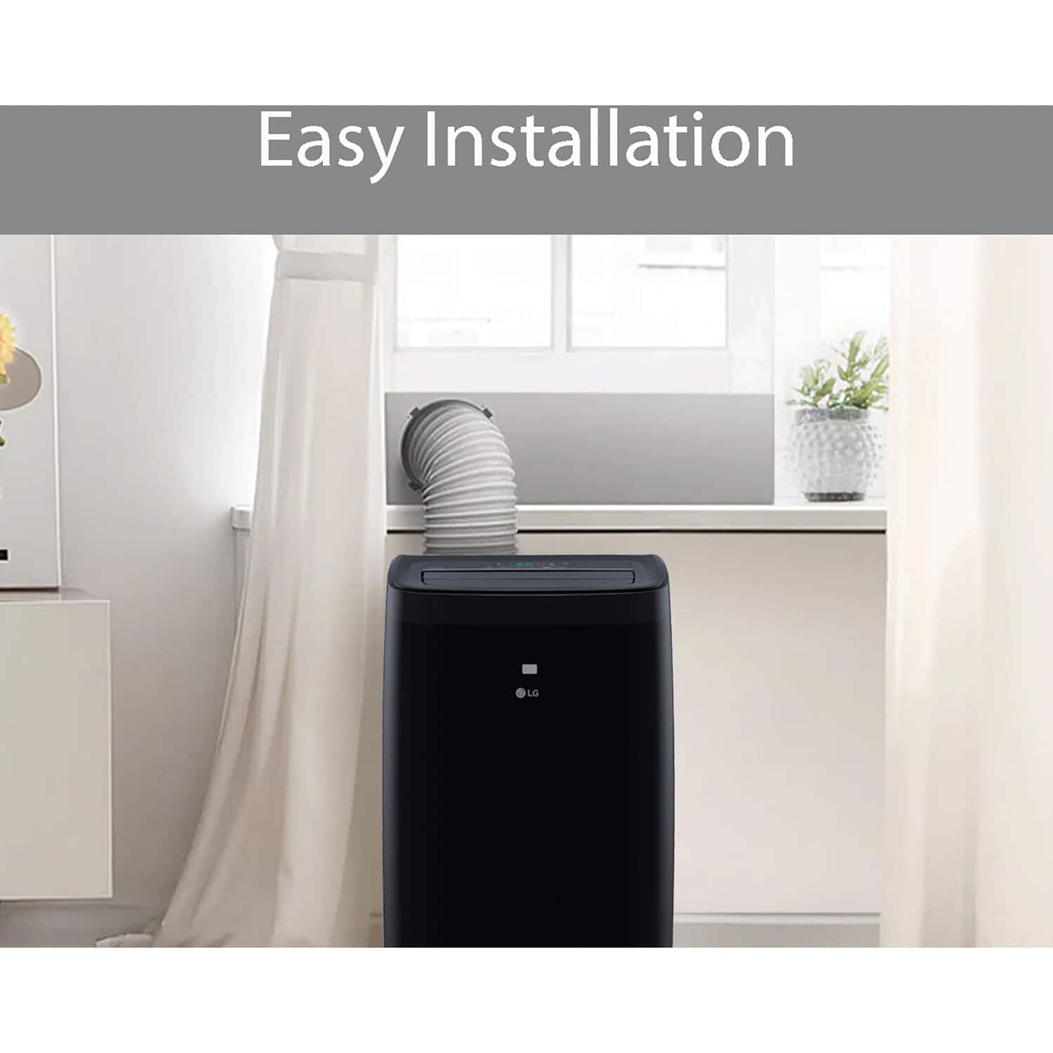 • Elevate your home cooling experience with the LG Smartportable air conditioner, designed for seamless control from anywhere using LG ThinQ, Amazon Alexa, or Google Assistant. Ideal for medium rooms up to 450 sq. ft., this unit features 2 cooling/fan speeds, a 24-hour timer, and an auto-swing vent for optimal airflow distribution. The auto restart function ensures continuous cooling post-power outages, while the convenience of rolling casters and an LCD remote enhances usability. Setup is a breeze with the included window venting kit, and the washable filter with a check alert guarantees fresh air circulation. Embrace unbeatable cooling comfort all summer long with this innovative air conditioner.