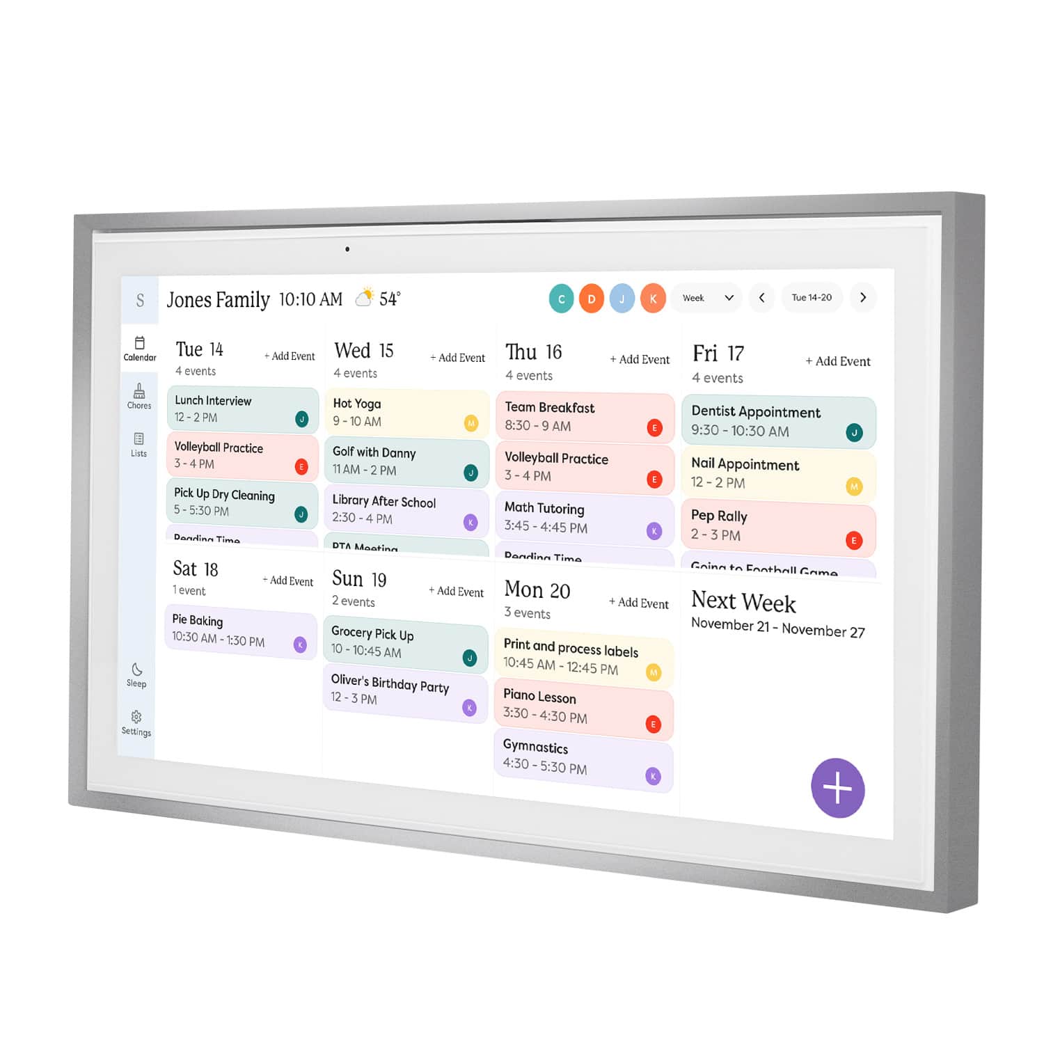 • Skylight Calendar is an innovative touchscreen display for all your calendar events, to-do’s, grocery list, and chores to help you organize your family’s busy schedule. It has a 15” touch screen that displays your family’s schedule in HD clarity making it a beautiful centerpiece for your home. It is the perfect size for a kitchen counter or can be mounted on a wall. High-quality metal stand and wall mount included.
