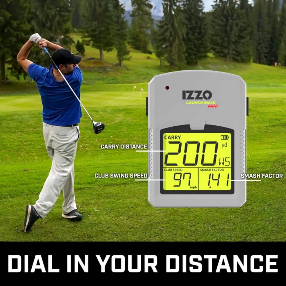 • Introducing the Izzo Golf Launch Mate Mini Golf Launch Simulator - the ultimate golf training aid for tracking your performance on the course. With its accurate measurements and pocket-sized convenience, this launch monitor is a game-changer for golfers of all skill levels. With this training aid, you can take your golf game to the next level and perfect your swing with precise data on carry distance, club speed, and smash factor. Don't be fooled by its small size, the IZZO Golf Launch Mate Mini packs a punch and can easily be carried in your pocket for use at any indoor or outdoor range. Say goodbye to lugging around heavy equipment and hello to effortless portability. This launch monitor is perfect for golfers on the go and can be used with any club in your bag, from driver to wedges. Not only is this training aid compact and versatile, but it is also incredibly portable. The IZZO Golf Launch Mate Mini comes with a convenient carry case, making it easy to store away when not in use or bring along on your travels. With this launch monitor, you can now practice your swing and track your progress anywhere, anytime. Using the IZZO Golf Launch Mate Mini is simple and hassle-free. Just pop in 4 AA batteries (easily interchangeable) and start measuring shot distance in yards. No complicated setup or instructions necessary, just set it on the ground at a safe distance from the ball and start hitting golf balls . This training aid is designed to make your life easier and help you focus on improving your golf game. In conclusion, the IZZO Golf Launch Mate Mini Golf Launch Simulator is a must-have for any golfer looking to up their game. With its accurate measurements, pocket-sized convenience, universal compatibility, complete portability, and simple operation, this training aid is a game-changer. So why wait? Order yours today and take the first step towards improving your golf game!