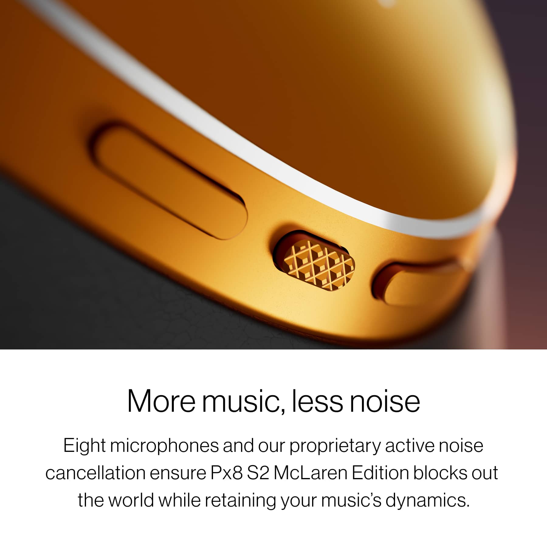 • The Px8 S2 McLaren Edition is the newest expression of the partnership between Bowers & Wilkins and McLaren Automotive and McLaren Racing. It fuses the exceptional wireless sound and luxurious materials synonymous with Bowers & Wilkins’ flagship over-ear headphones with a bold new McLaren-inspired design. The Px8 S2 McLaren Edition features all-new design details that reference McLaren’s iconic performance and sporting heritage. Inspired by the iconic colour of founder Bruce McLaren’s early racing cars, this distinctive Papaya finish is still used on McLaren’s Formula 1 Team cars to this day. Px8 S2 McLaren Edition is engineered to deliver our ultimate headphone sound quality, ensuring you hear every detail in your music with precision and clarity. By combining custom-designed drive units with powerful digital processing, Px8 S2 McLaren Edition offers unrivalled audio performance. When paired with high-resolution music, the results are unforgettable. Whether you are listening to music, watching movies or playing games, Px8 S2 McLaren Edition makes it sound exceptional thanks to aptXTM Lossless and aptXTM Adaptive. These latest high-resolution capable wireless audio technologies allow Px8 S2 McLaren Edition to adjust dynamically to optimise performance.