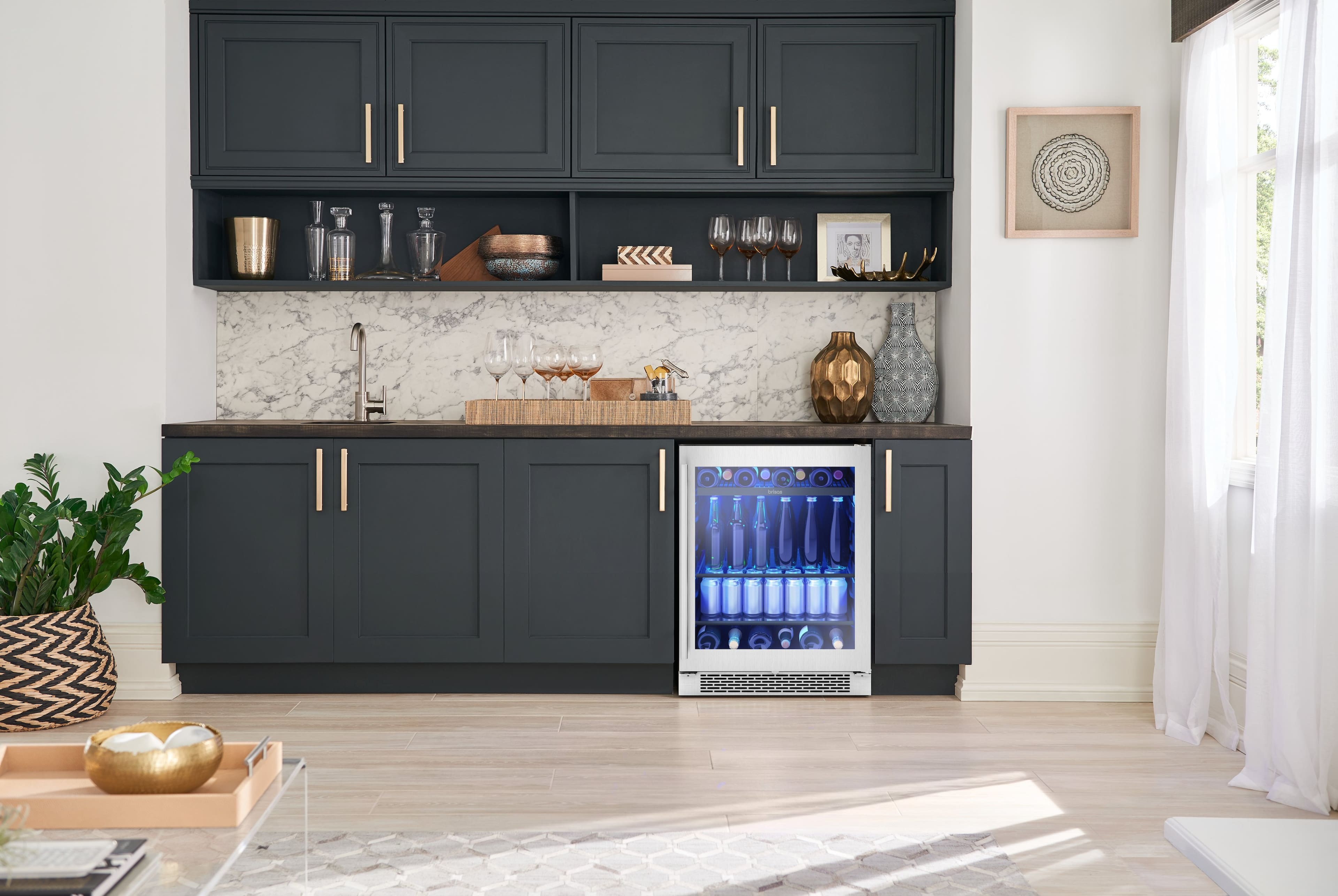 • Always be ready to entertain guests or just the family! with our ADA-compliant Brisas Beverage Cooler. Deluxe features like PreciseTemptemperature control for maintaining accurate temperatures, Active Cooling Technology for even cooling, and a Vibration Dampening System ensure that everything you store in your Brisas cooler from pink lemonade to Pinot Grigio will be at the ideal serving temperature. Cooler height can be adjusted below 32 inches to meet ADA standards.