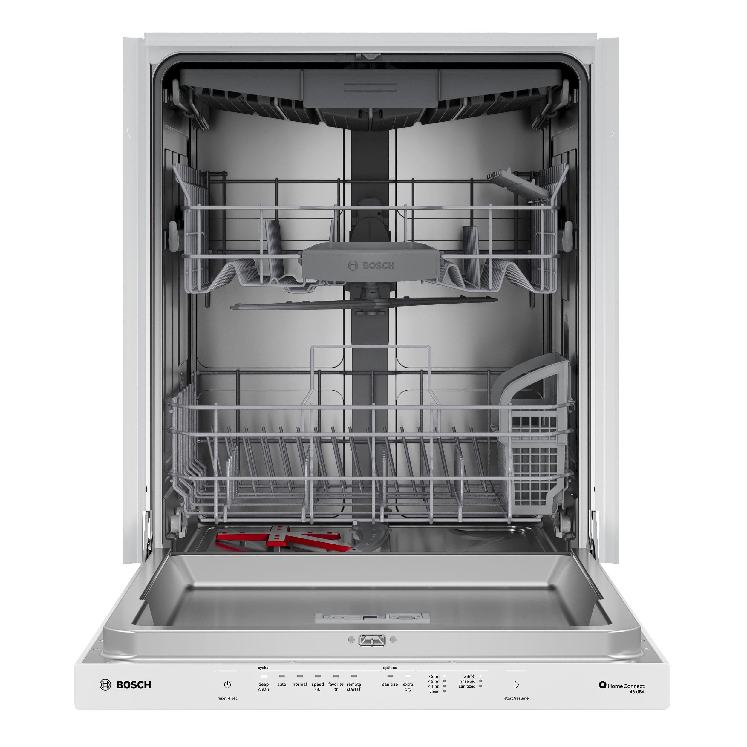 • The Bosch 300 Series dishwasher with Zone Wash technology features a dedicated intensive wash space to tackle stuck-on food. PureDry technology delivers simply clean, simply dry dishes with an energy efficient, closed drying system.The Standard 3rd Rack provides ample space for all your utensils while maximizing functionality. Enjoy personalized app features like Smart Cycle and hands-free voice control with Amazon Alexa or Google Home through Wi-Fi enabled Home Connect. Elevate your cleaning experience with the Bosch 300 Series dishwasher today.