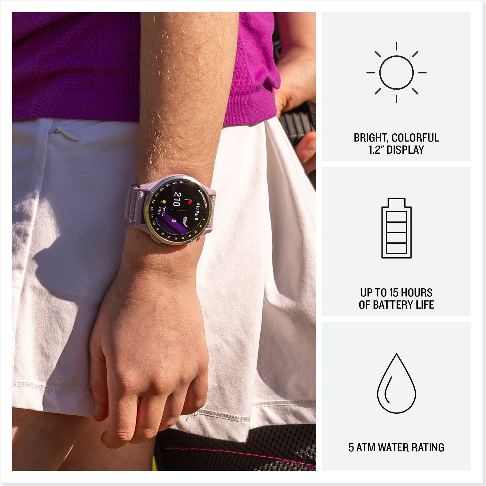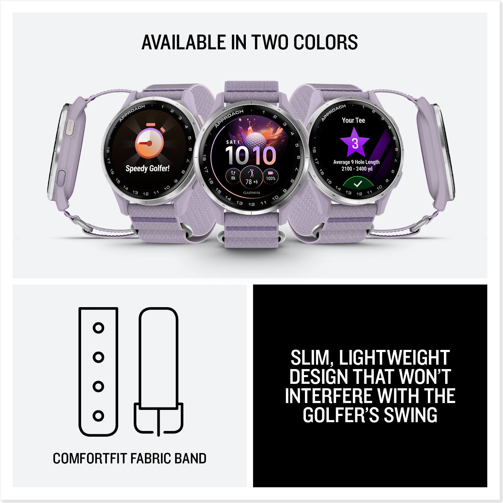 • We’ve got their game with Approach J1, the GPS golf watch specifically made to help junior golfers learn and improve. Its slim, lightweight design and ComfortFit fabric band will securely fit their wrist and won’t interfere with their swing. Tee-off guidance scales every hole to the golfer’s ability by providing forward tee locations down the fairway on all 43,000+ preloaded courses. Adjust par to match the golfer’s skill level to set realistic goals and help build confidence. And the pace-of-play timer teaches younger golfers how much time it should take to play each hole. Approach J1 has a bright AMOLED touchscreen display with a simplified interface that focuses on the information they need to understand their game. With battery that lasts up to 15 hours in GPS mode, they can go from basics to birdies in no time.