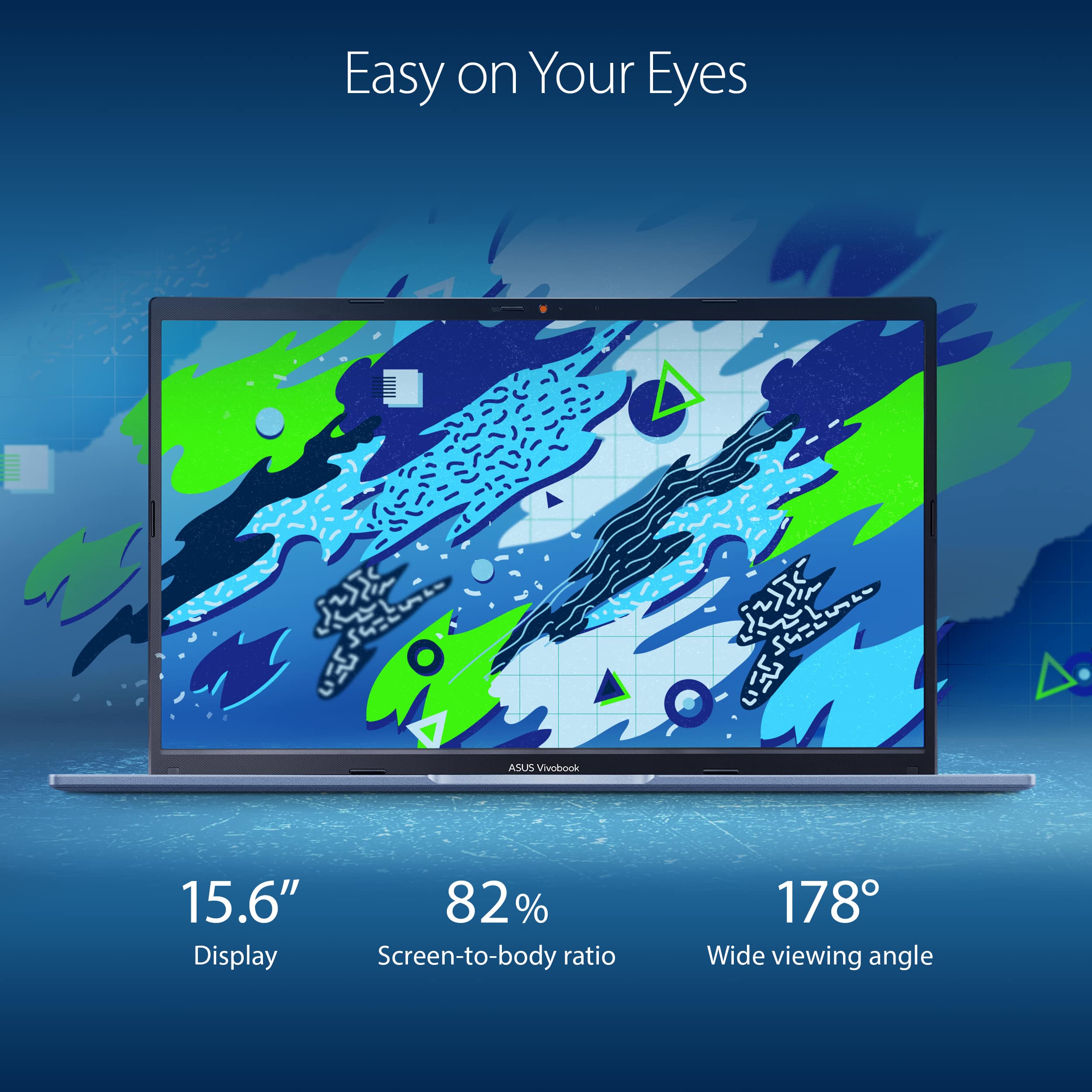 • Stamp your style on the world with ASUS Vivobook 15, the feature-packed laptop that makes it easy to get things done, anywhere. Everything about Vivobook 15 is bold and improved, from its powerful 12th Gen Intel® Core™ processor to its crisp and clear display, 180° lay-flat hinge, modern color and sleek geometric design. Make a fresh start today with Vivobook 15! ASUS VivoBook 15 laptop comes with 15.6” FHD (1920 x 1080) with ultra-slim NanoEdge bezels. It comes with extensive connectivity with USB 3.2 Gen 1 Type C, USB 3.2 Gen 1 Type A, USB 2.0 Type A, 3.5mm Combo Audio Jack, Wi-Fi 6 (802.11ax) and Bluetooth 5.0 (*USB transfer speed may vary. Learn more at ASUS.com). It is sleek and lightweight at only 3.31 lbs and 0.78 inches thick. It has ASUS AI Noise-Canceling Technology, which employs machine learning to isolate unwanted noise from human speech, which ensures the best communications experience