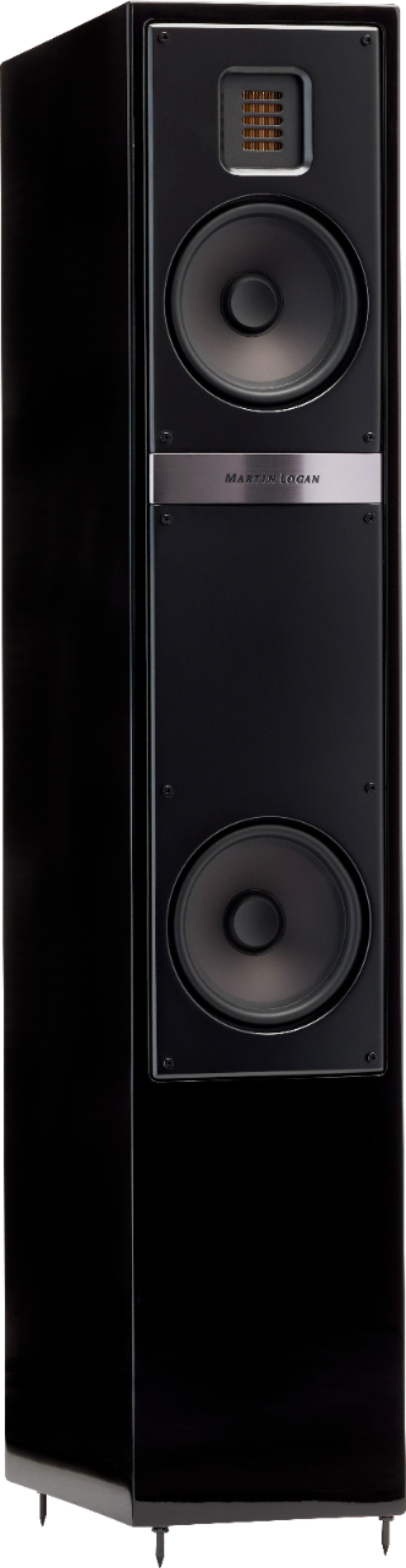 • Elevate your music listening experience with this gloss black MartinLogan Motion Series tower speaker. The dual 5.5-inch aluminum cone woofers are low-mounted to produce thundering bass while reducing floor bounce, and the Folded Motion tweeter ensures the high-frequency sounds are clear. This MartinLogan Motion Series tower speaker features solid cabinets to reduce vibrations.