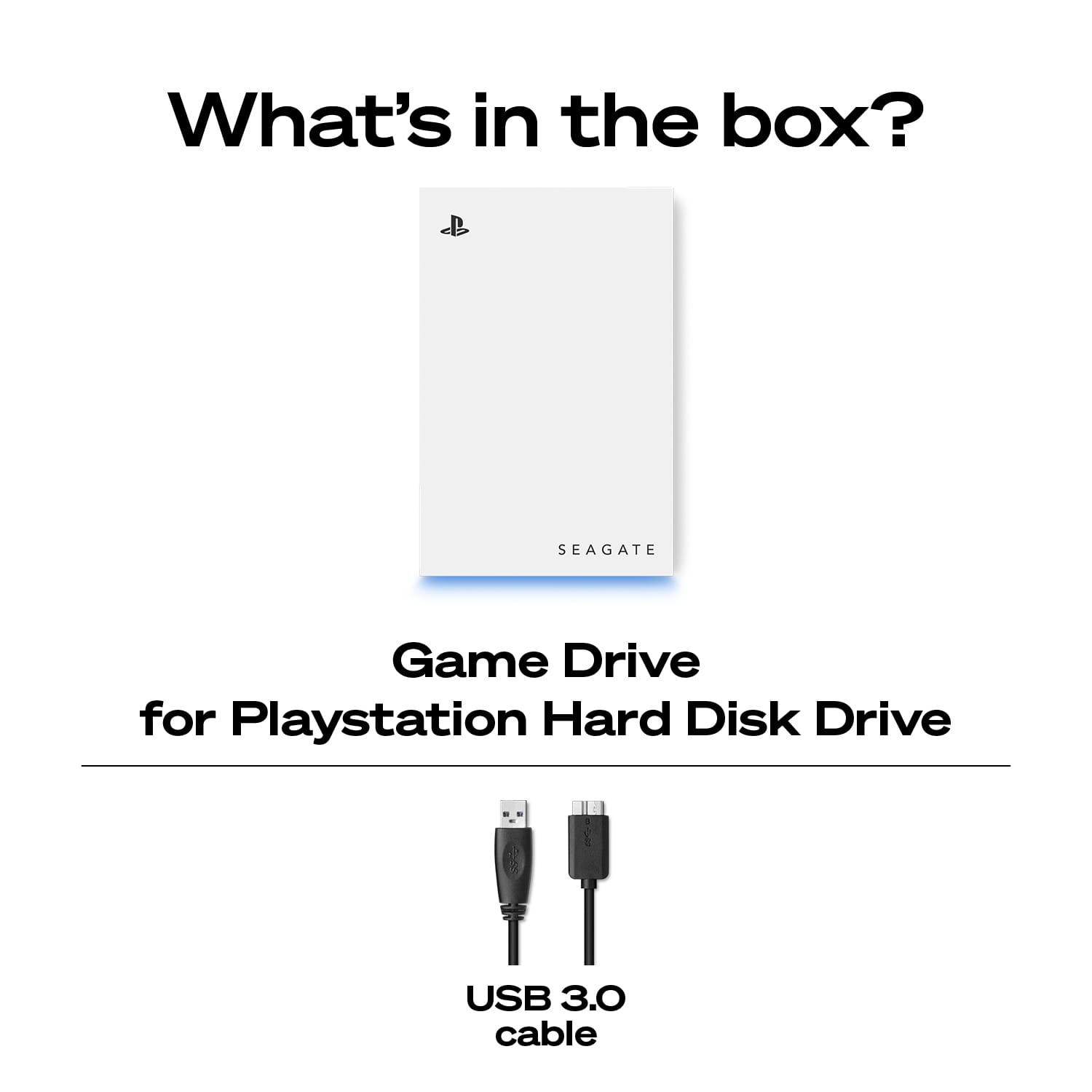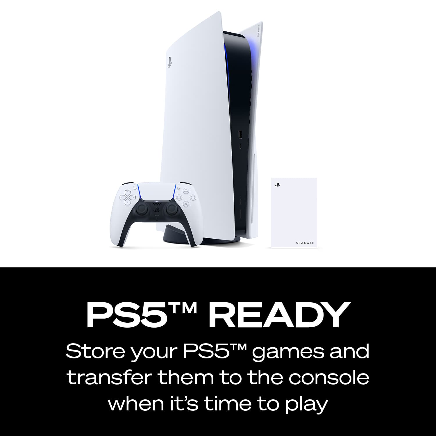 • Extend your gaming storage with Game Drive for PS5 . Officially licensed for PlayStation , this HDD works seamlessly with PS5 and PS4 consoles—while adding a splash of Blue LED lighting to any gaming atmosphere. Easily archive your PS5 games on the drive until it’s time to transfer and play them. Plus, 2TB of add-on storage means a bigger library without having to delete titles.