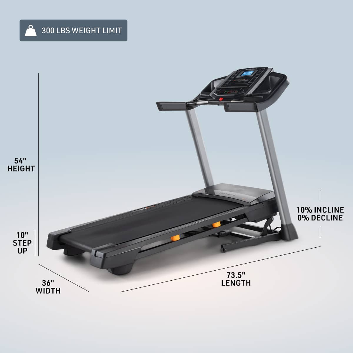 • About the T Series S Treadmill: The T Series 6.5S is equipped with a 5” LCD display for tracking your workout stats and a built-in device shelf, giving you a convenient spot to securely connect and use your own device while you train. The 0-10 MPH speed range allows you to run up to a 6-minute-mile pace. A 0-10% incline can gradually slope, simulating hilly terrain and making your workout more intense and effective. The SelectFlex™ cushioned deck offers customizable impact control; choose soft for low-impact walking or firm for more realistic road running. This treadmill also features EasyLift™ Assist, allowing you to fold it up effortlessly and reclaim your space when not in use. With a more compact running surface, the T Series 6.5S delivers a premium NordicTrack experience in a space-saving footprint. About iFIT: iFIT offers over 10,000 workouts led by professional athletes and fitness experts. With the iFIT Train Membership*, you can access a wide range of training programs, including strength, yoga, HIIT, and more. iFIT's SmartAdjust™ technology personalizes each workout to your fitness level, and ActivePulse™ adjusts workout intensity based on your heart rate, ensuring optimal training. The iFIT platform also integrates with popular fitness apps like Strava, Garmin Connect, and Apple Health, allowing you to track your progress seamlessly.