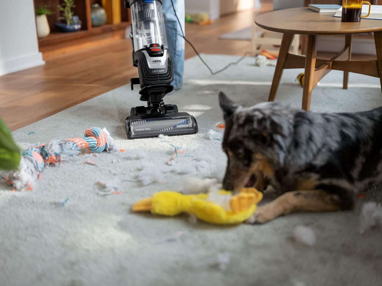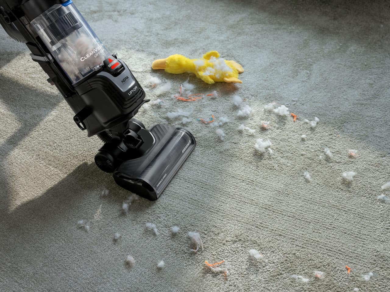 • The powerful suction on this vacuum and detachable pod make it easy to remove everything from pollen to pieces of dog food from hard floors and soft surfaces.