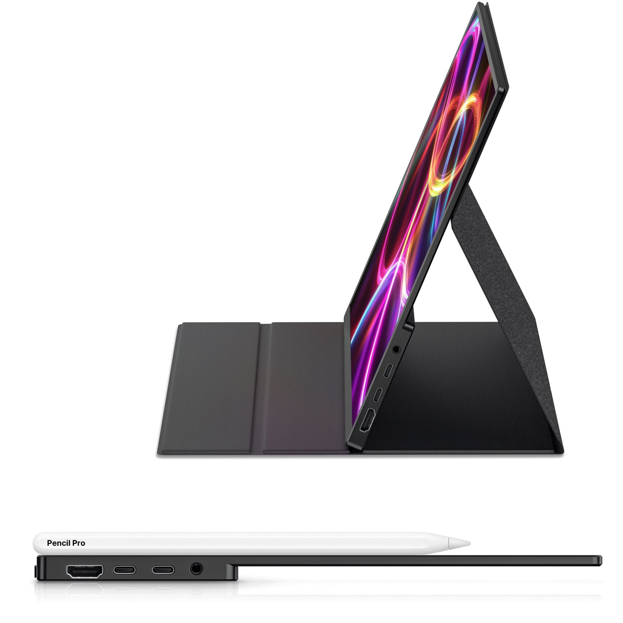 • Mobile Pixels Fold portable monitor with high-definition IPS screen renders accurate and bright color, extending your screen or playing games on business trip, travel, or home entertainment. It supports plug and play with DP-enabled USB-C devices, no driver installation is required. The Fold portable external monitor comes with a durable magnetic case that works as a kickstand as well as a protective sleeve. The scratchproof smart cover is made of durable PU leather and can outlast the life of the device.