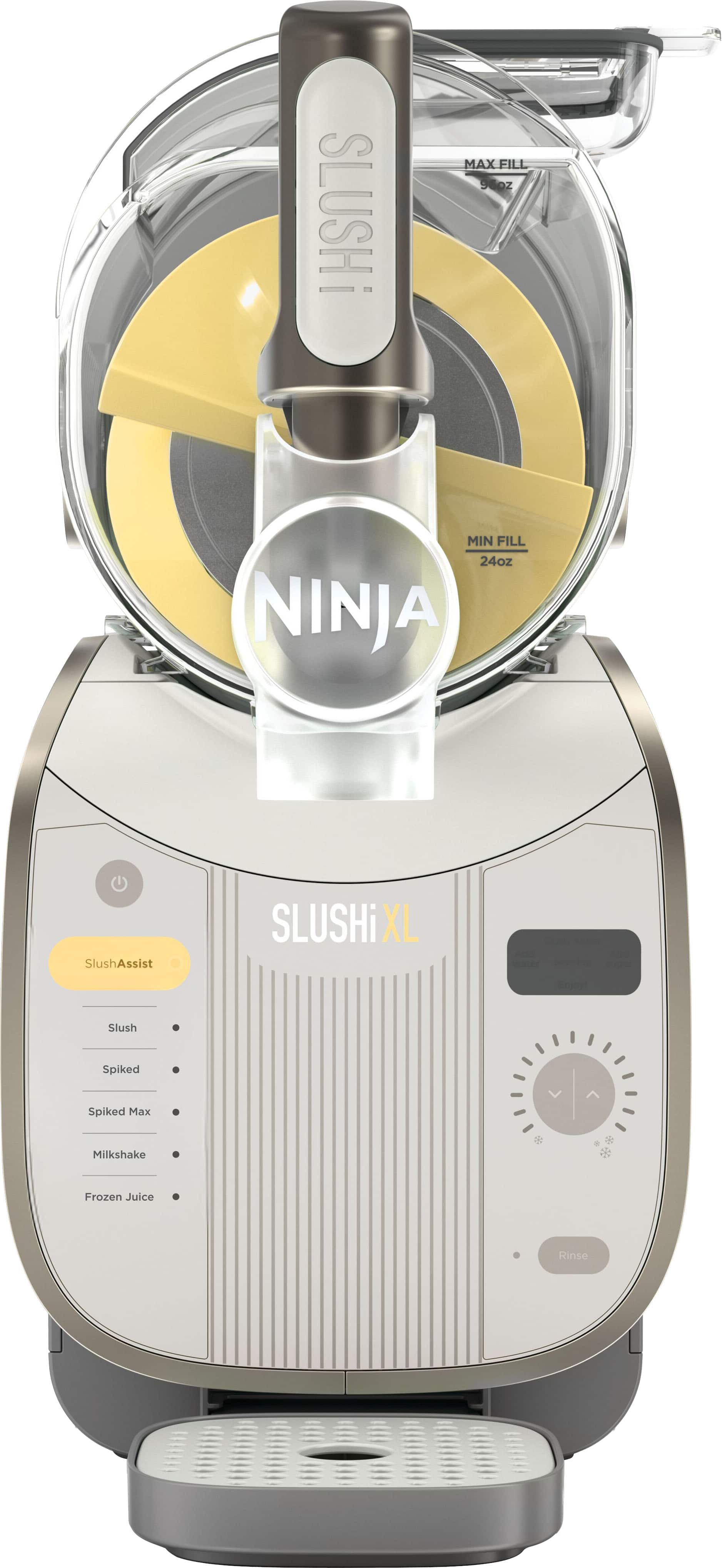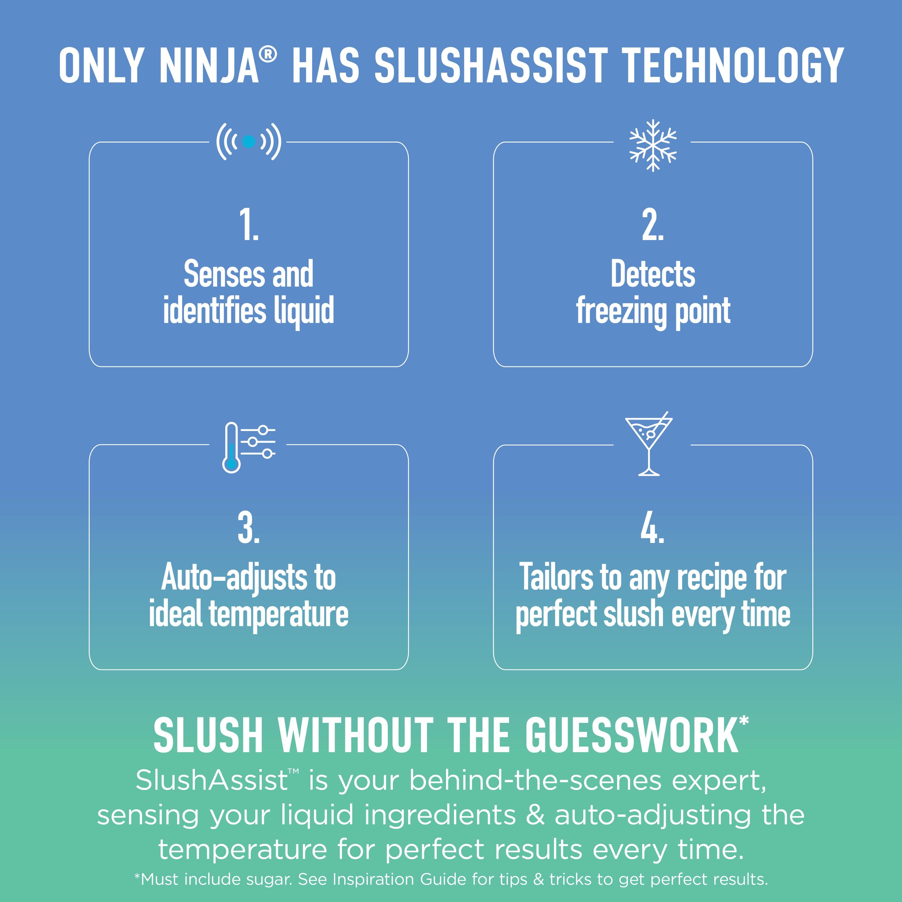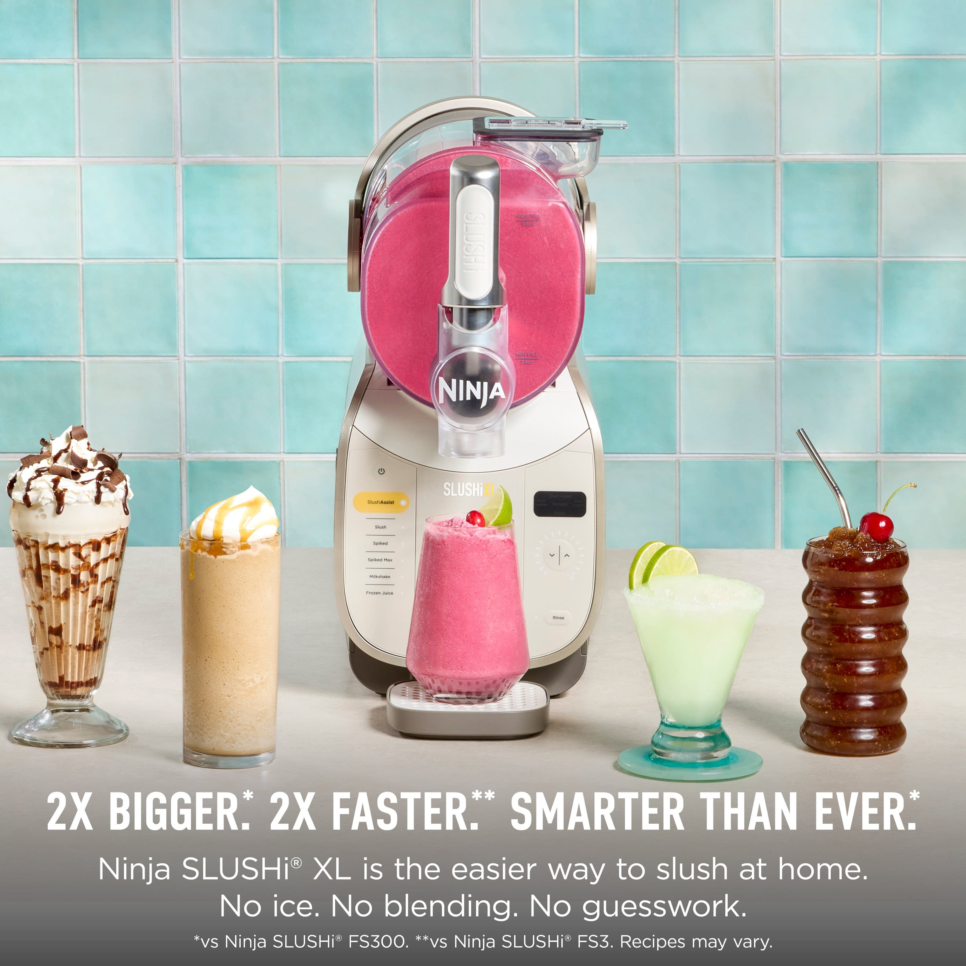 • SLUSHi XL is 2X bigger* & 2X faster** than the original Ninja SLUSHi®. Ninja’s exclusive SlushAssist™ Technology is your behind-the-scenes expert, sensing your liquid ingredients & auto-adjusting the temperature for perfect results without the guesswork. *vs Ninja SLUSHi® FS300. **Compared to Ninja SLUSHi® FS301. Recipes may vary.
