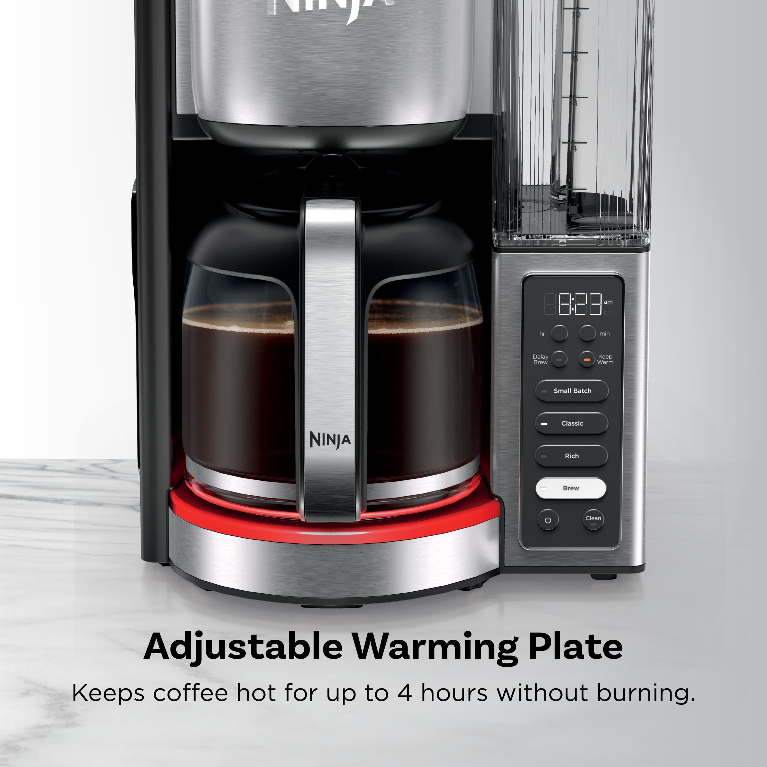 • Ninja Fresh Brew is a 14-Cup programmable drip coffee maker that brews hot, flavorful and never bitter coffee every time. Customize your brew with 2 brew styles, Classic and Rich, and use your favorite fresh grounds. Thermal Flavor Extraction Technology delivers a balanced, full flavor cup of coffee that is the perfect temperature with every brew. From a small batch (1-4 cups) to a full carafe, you can expect the same great taste brew after brew. Enjoy ultimate convenience with delay brew functionality, an adjustable warming plate, a 70-oz removable water reservoir and permanent filter. Brew your way with the Ninja Fresh Brew.