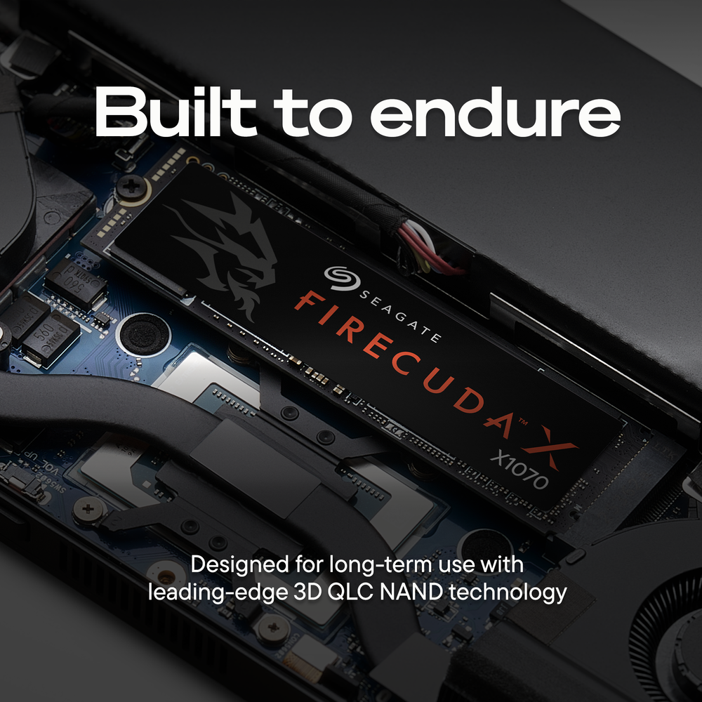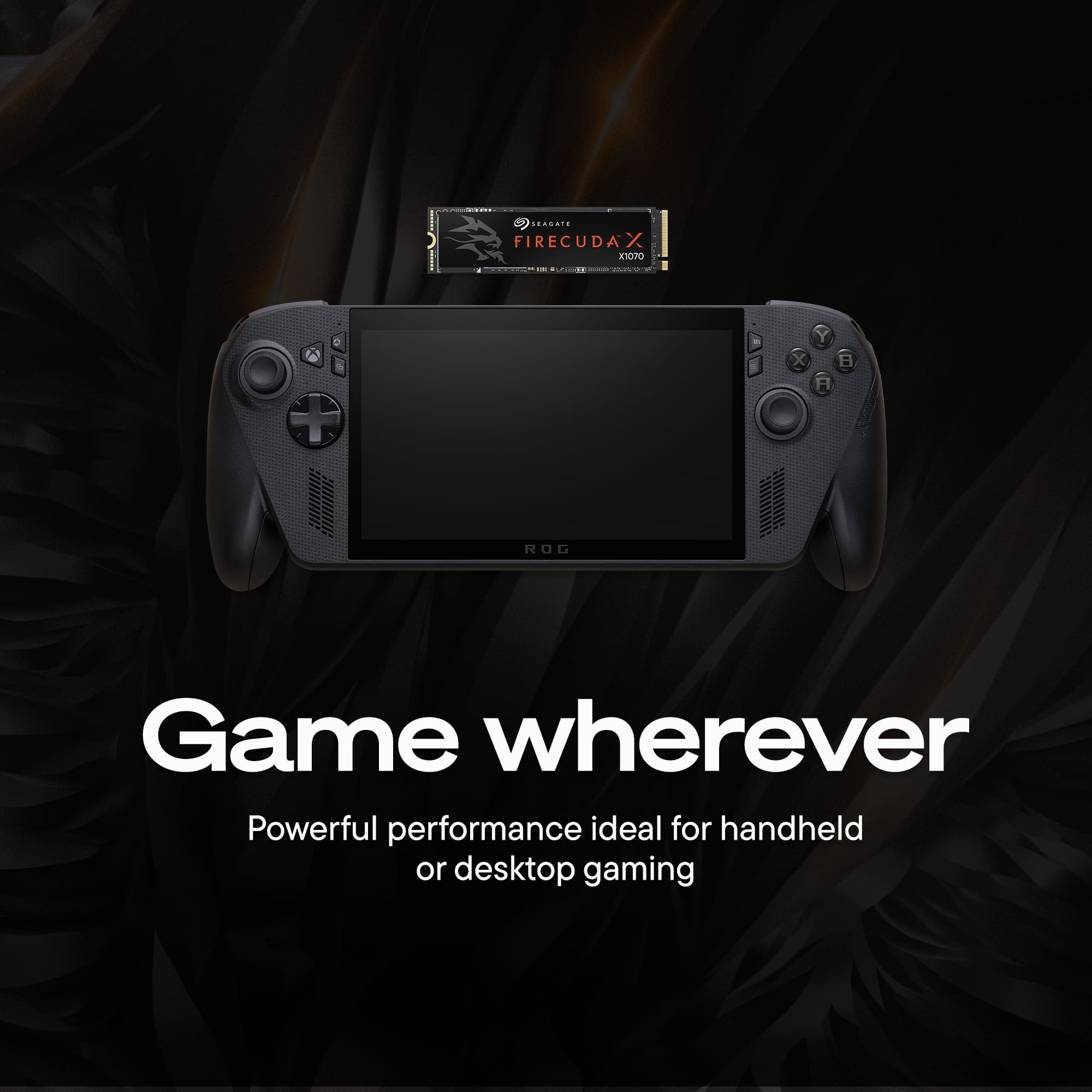 • FireCuda X1070. Real power. Unreal performance. Lightning-fast and optimized for handheld gaming and PCs, FireCuda X1070 SSD serves up PCIe Gen4 speeds for seamless booting, loading and multitasking. With generous space for all your games and streams, it offers high-capacity storage without a premium price tag. Ruggedly durable, it’s built for sustained throughput and thermal balance, ensuring smooth gameplay for extended gaming sessions.