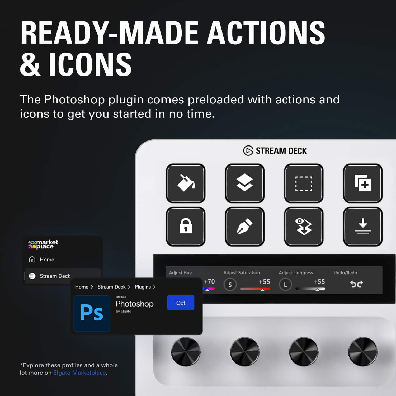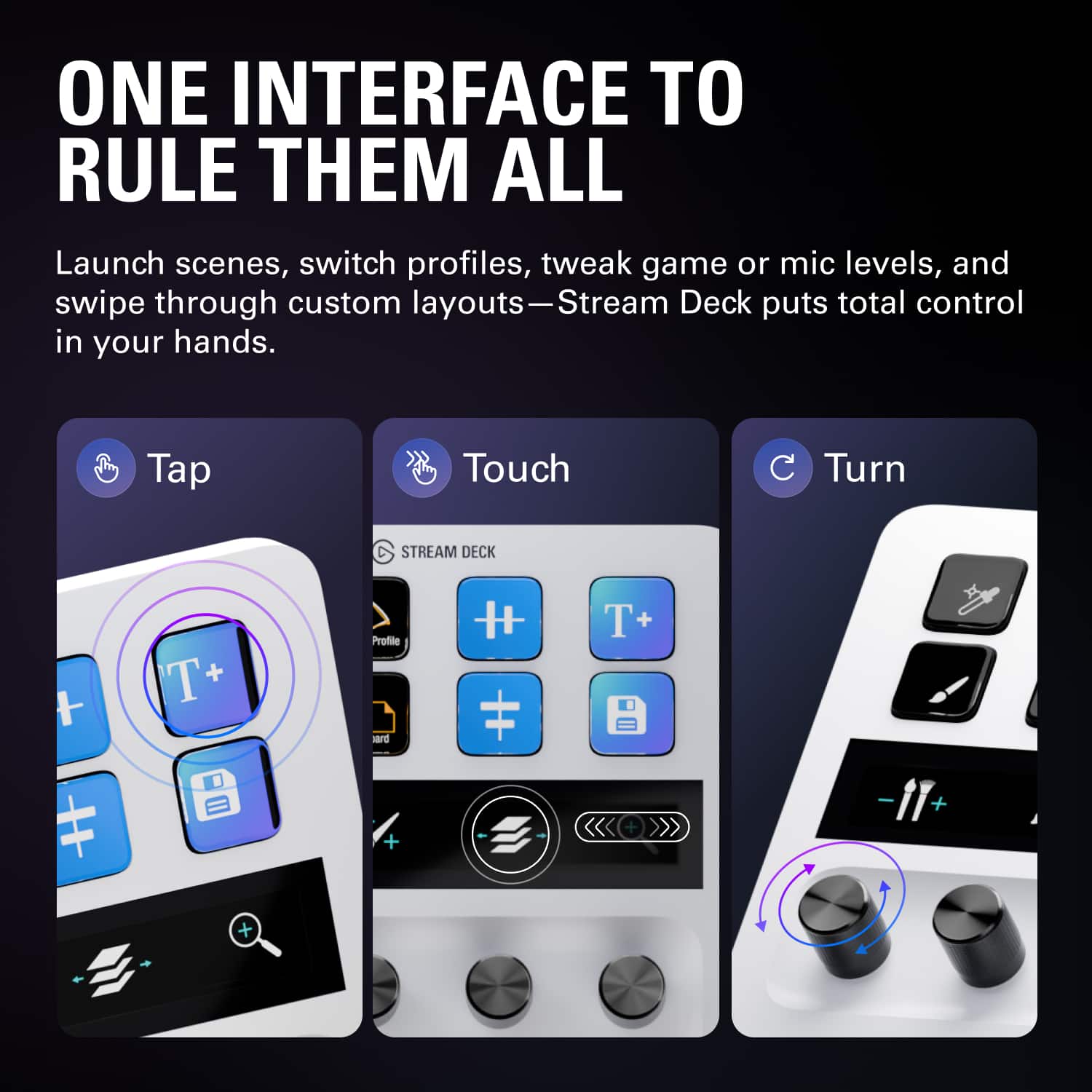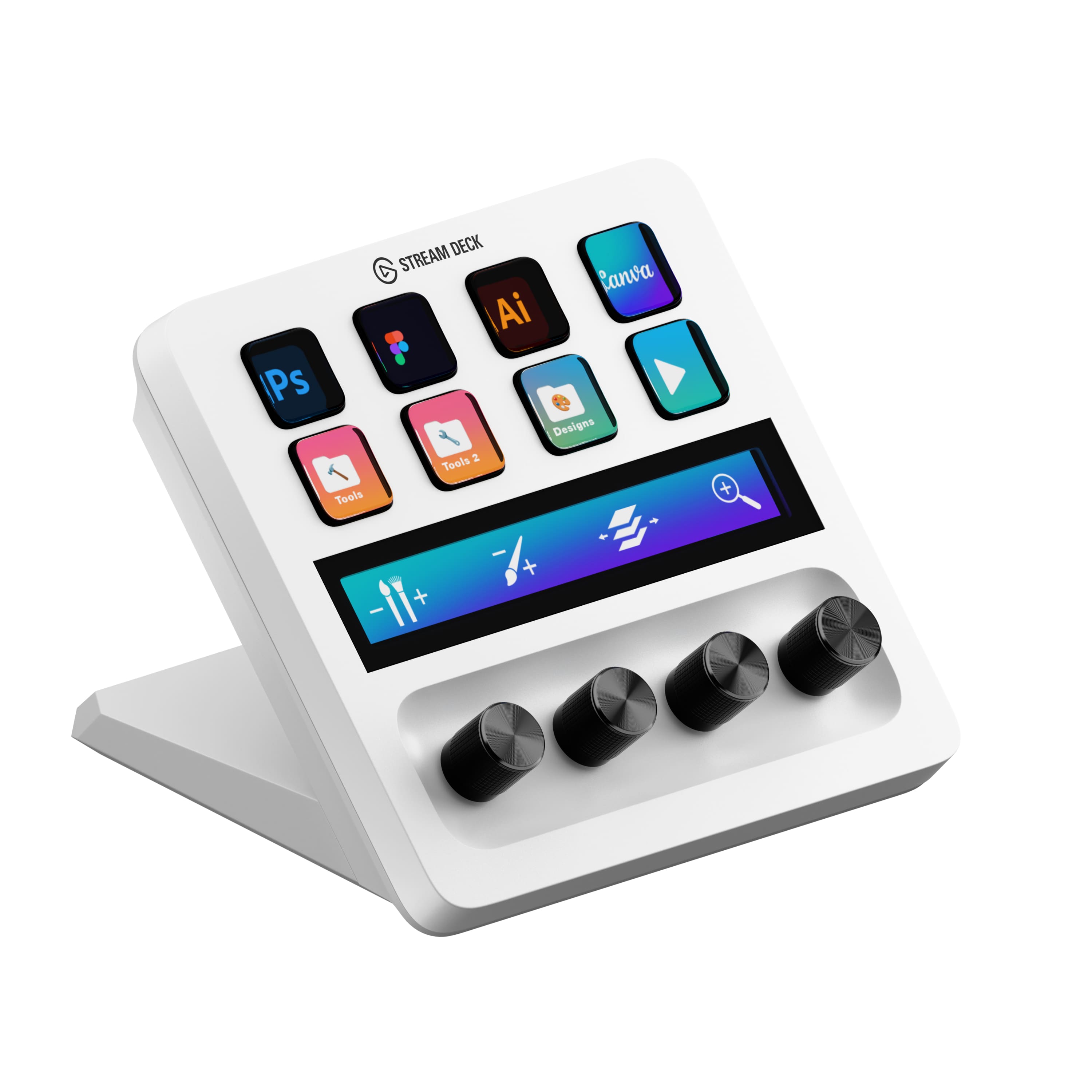 • Iconic Stream Deck tech with LCD keys, dials, and touch strip. Fully customizable. Perfect for any workflow. Stream Deck + is your audio mixer, studio controller, production console – anything you want it to be. Trigger actions. Control mics and cameras. Adjust volume, lighting, and much more. Create limitless pages for different apps and swipe between them on the fly. Set up with ease in the Stream Deck app. Unlock Elgato Wave Link mixing software, and hit the Stream Deck Store for plugins, icon packs, thousands or royalty-free music tracks, sound effects, and more. With new plugins and updates added regularly, Stream Deck + evolves with your workflow.