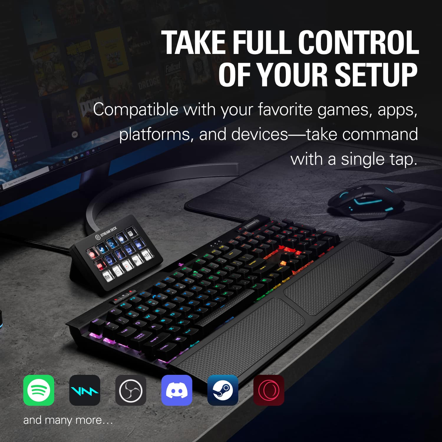 • Same Stream Deck power, now with a sharper snap. Smooth, fast, and precise, every key press triggers an action no matter where you apply pressure. Control apps, platforms, and devices—your entire setup—in one place. There’s no need to navigate menus or memorize keyboard shortcuts. Every command you need is at your fingertips, clearly labeled and ready for instant deployment. Personalize your Stream Deck with custom icons, screensavers, and a growing range of interchangeable faceplates. Configure keys with ease in the app, and visit Elgato Marketplace for plugins, icons, royalty-free music, effects, and more.