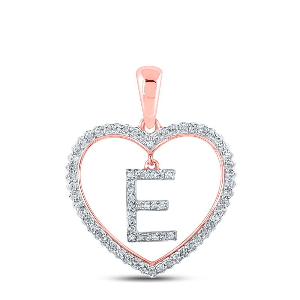 1/4CTW-DIA CN INITIAL "E" HEART PENDANT