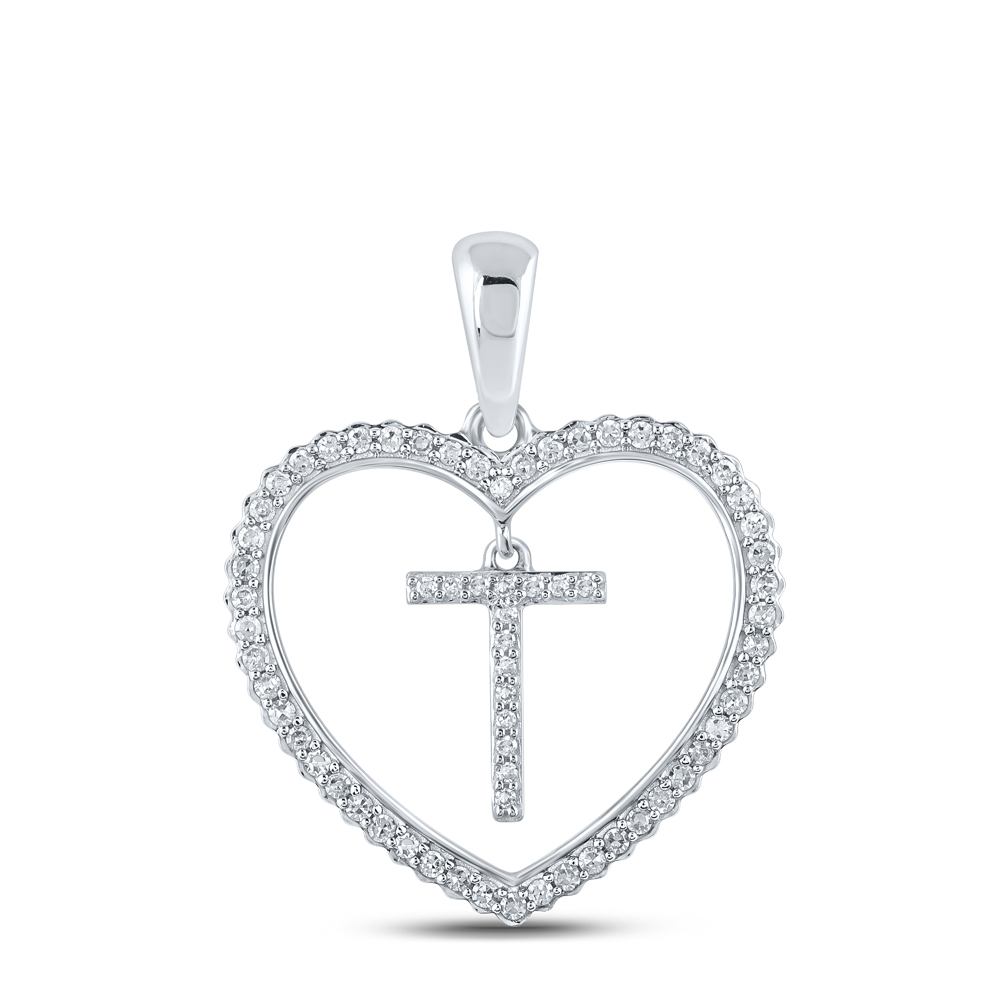 1/4CTW-DIA CN INITIAL "T" HEART PENDANT
