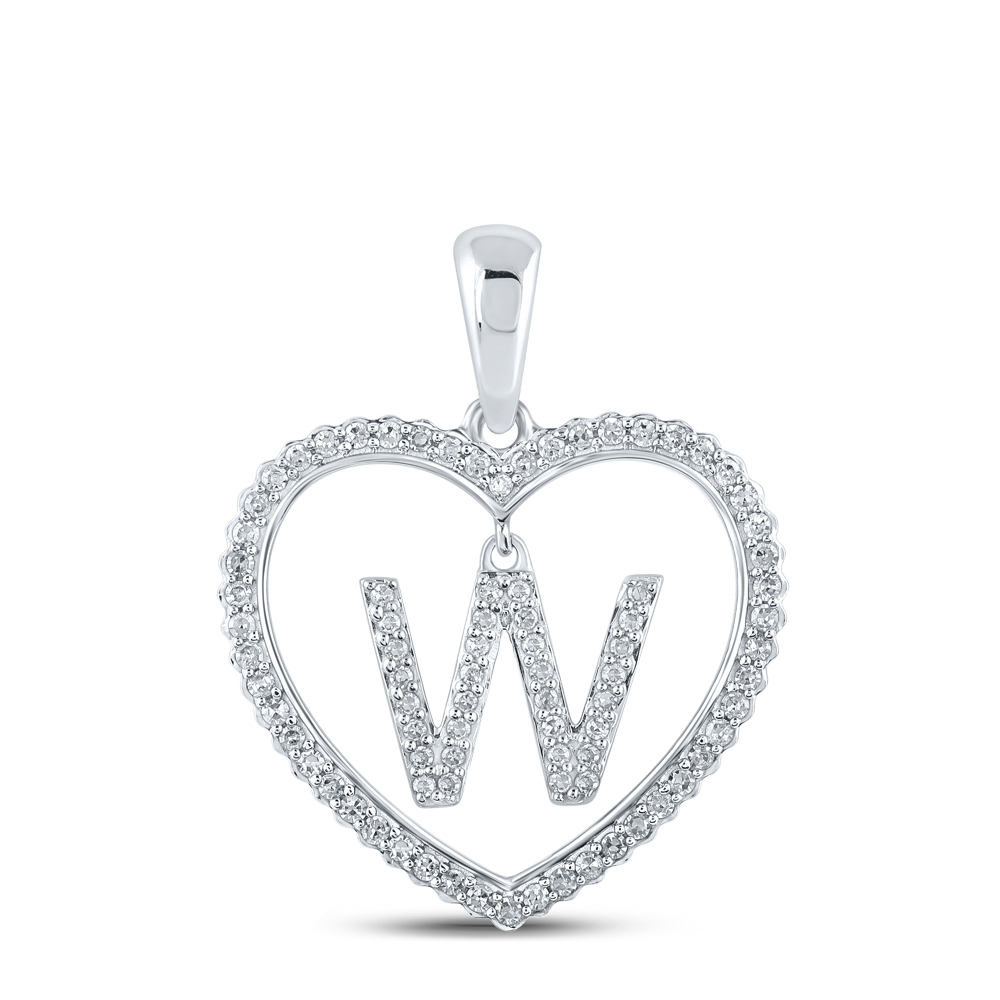 1/4CTW-DIA CN INITIAL "W" HEART PENDANT