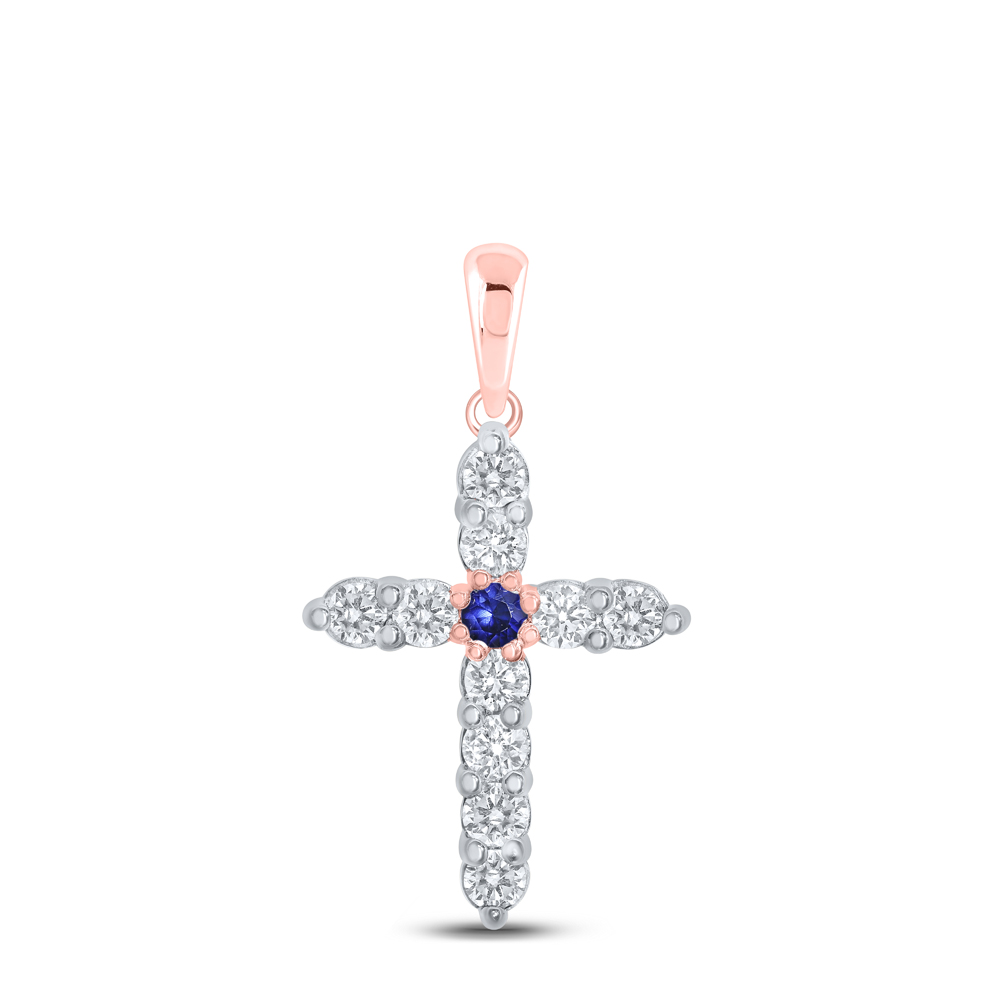 3/8CTW-DIA NK 1/20CT-SAPP NATURAL GEM CROS PENDANT