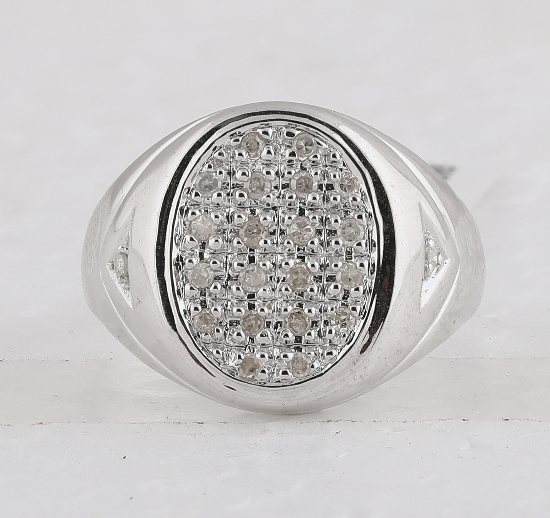 14kt White Gold Mens Round Diamond Oval Cluster Ring 1/4 Cttw