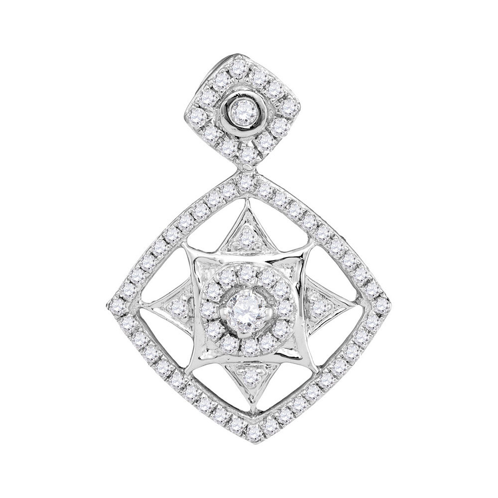10kt White Gold Womens Round Diamond Fashion Pendant 1/2 Cttw