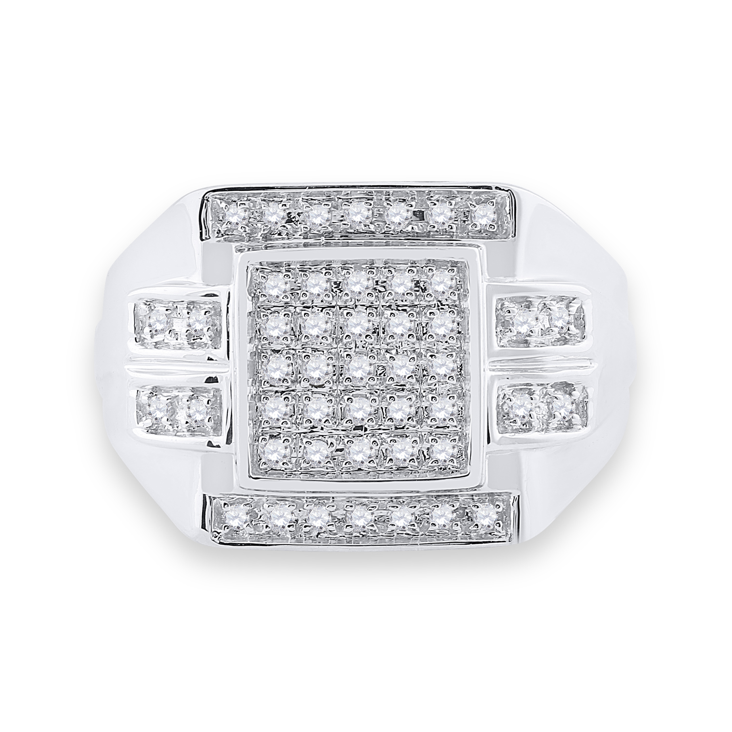 10kt White Gold Mens Round Diamond Square Cluster Ring 1/3 Cttw