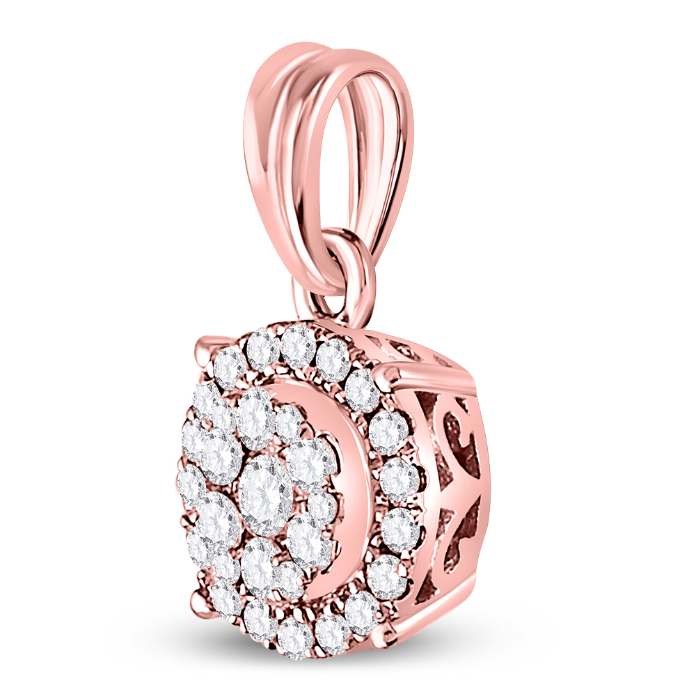 14kt Rose Gold Womens Round Diamond Halo Cluster Pendant 1/4 Cttw