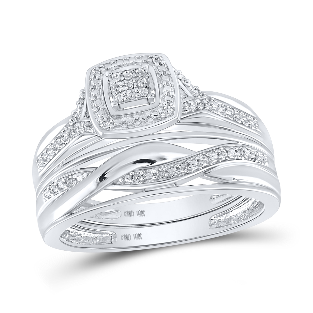 10kt White Gold His Hers Round Diamond Cluster TRIO Set 1/10 Cttw