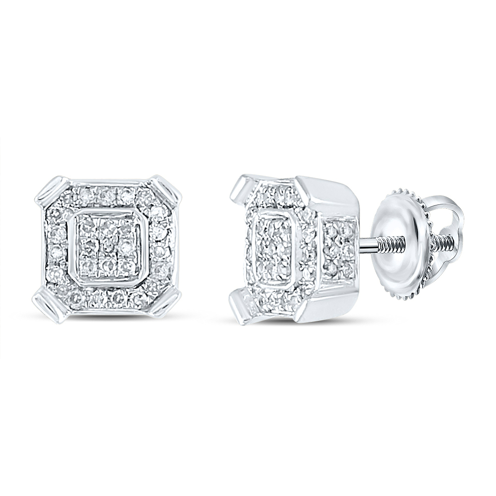 • 10kt White Gold Mens Round Diamond Fashion Cluster Earrings 1/3 Cttw