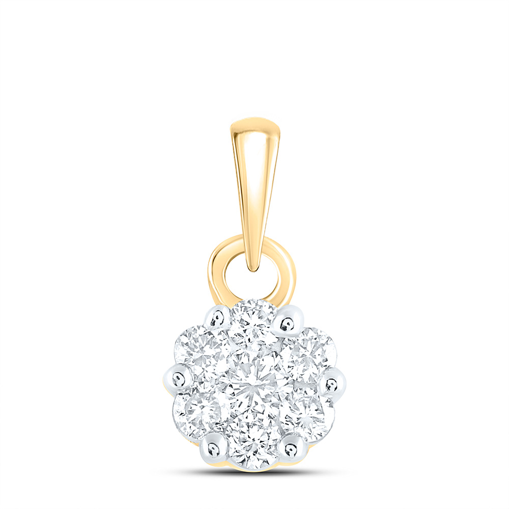 14kt Yellow Gold Womens Round Diamond Flower Cluster Pendant 1/4 Cttw