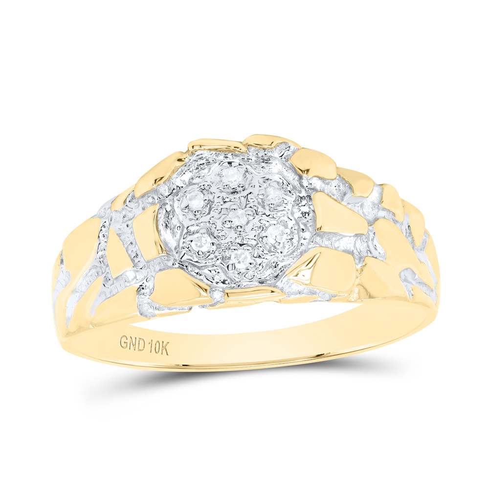 10kt Yellow Gold Mens Round Diamond Cluster Nugget Band Ring 1/20 Cttw