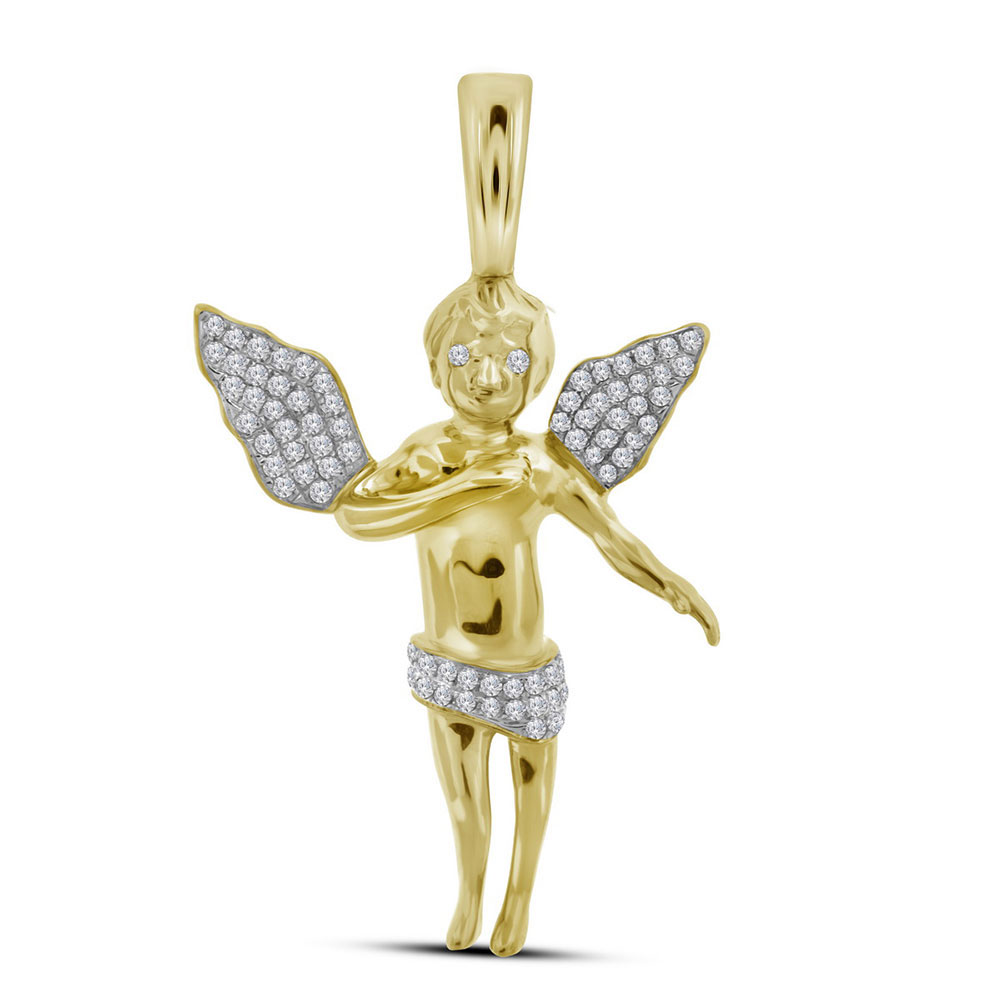 10kt Yellow Gold Mens Round Diamond Angel Cherub Charm Pendant 1/2 Cttw