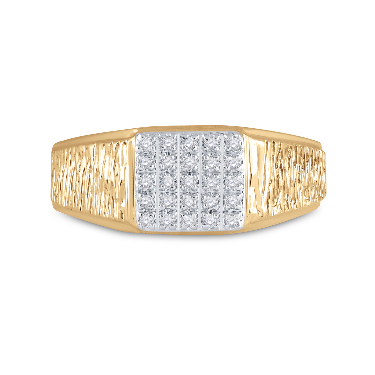 10kt Yellow Gold Mens Round Diamond Square Cluster Brushed Ring 1/8 Cttw