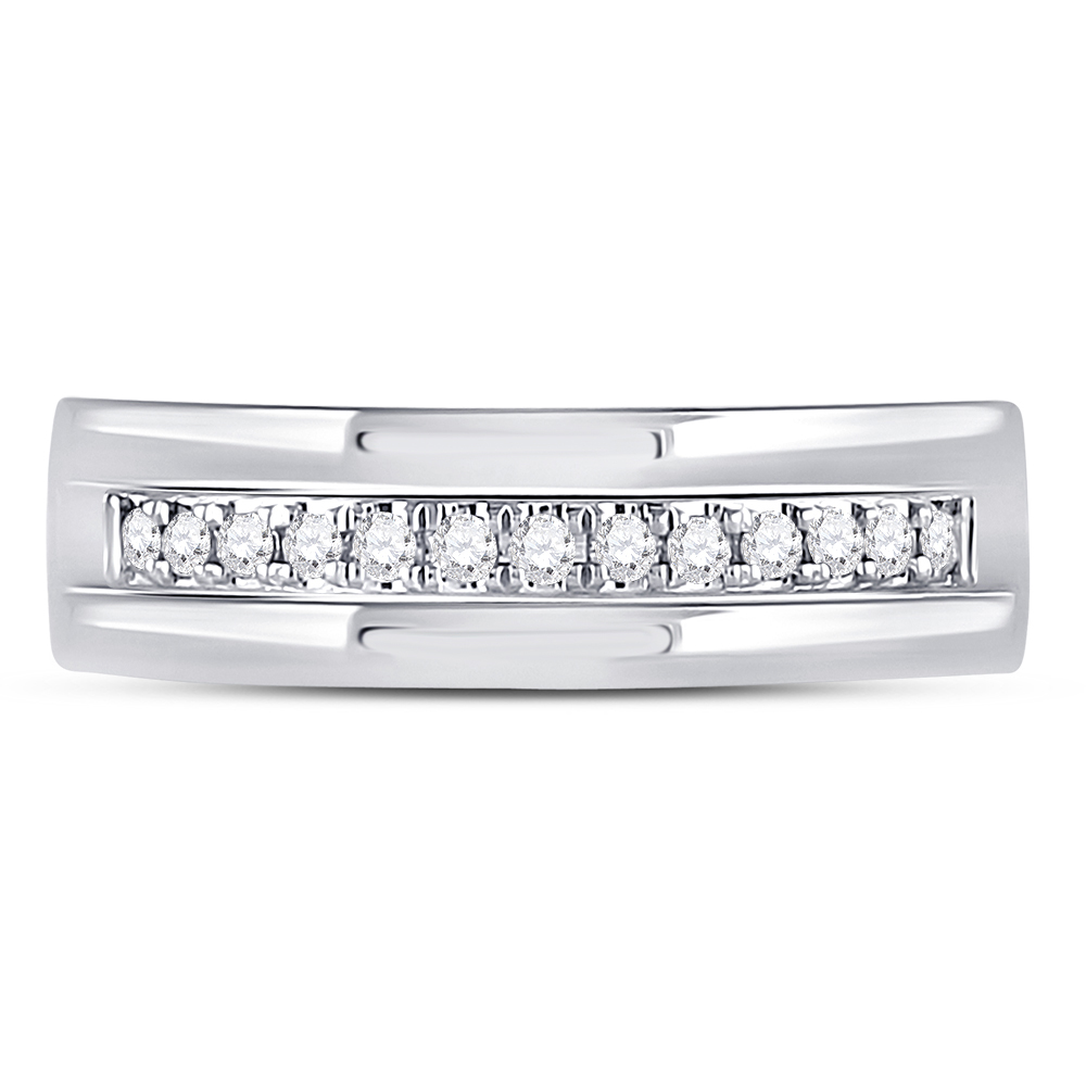 14kt White Gold Mens Machine Set Round Diamond Wedding Band Ring 1/5 Cttw