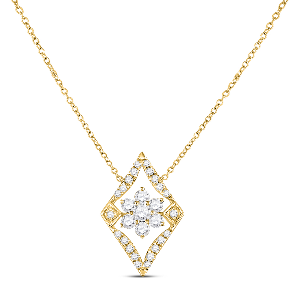 14kt Yellow Gold Womens Round Diamond Geometric Cluster Necklace 1/3 Cttw