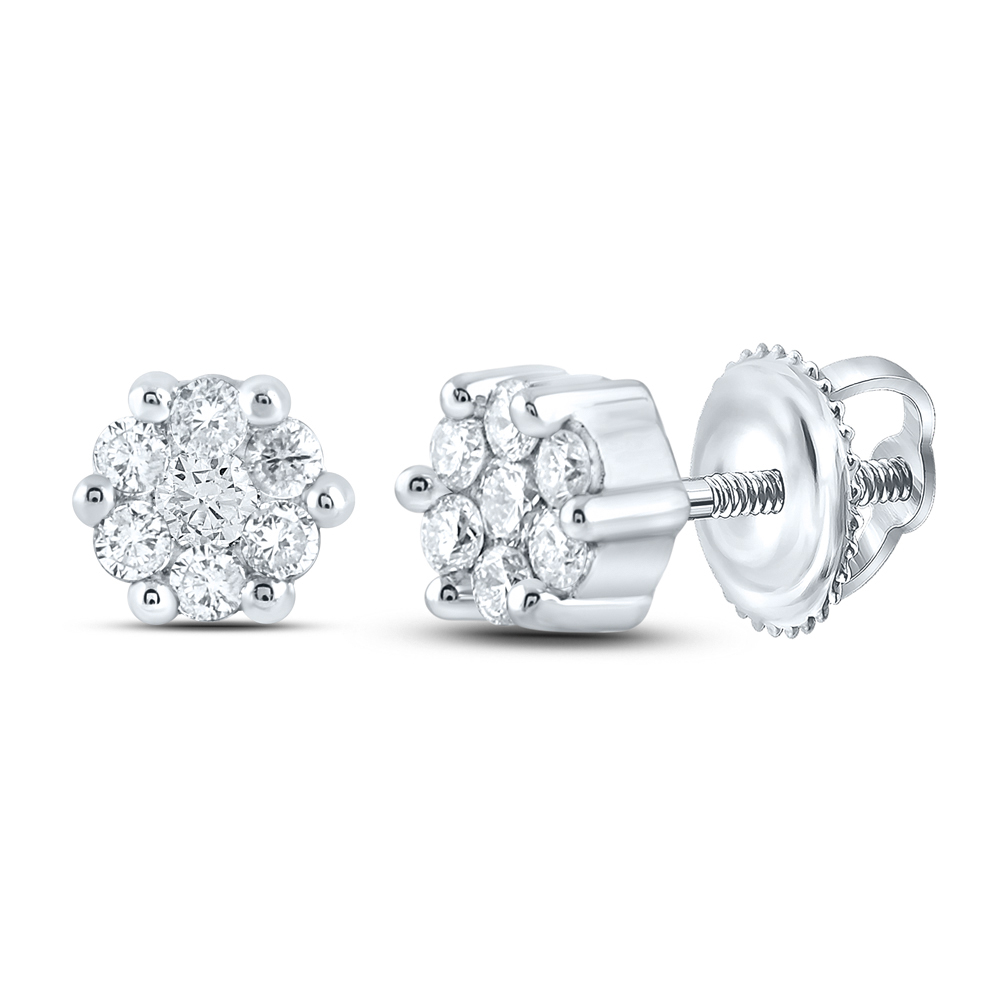 • 14kt White Gold Womens Round Diamond Flower Cluster Stud Earrings 1/6 Cttw