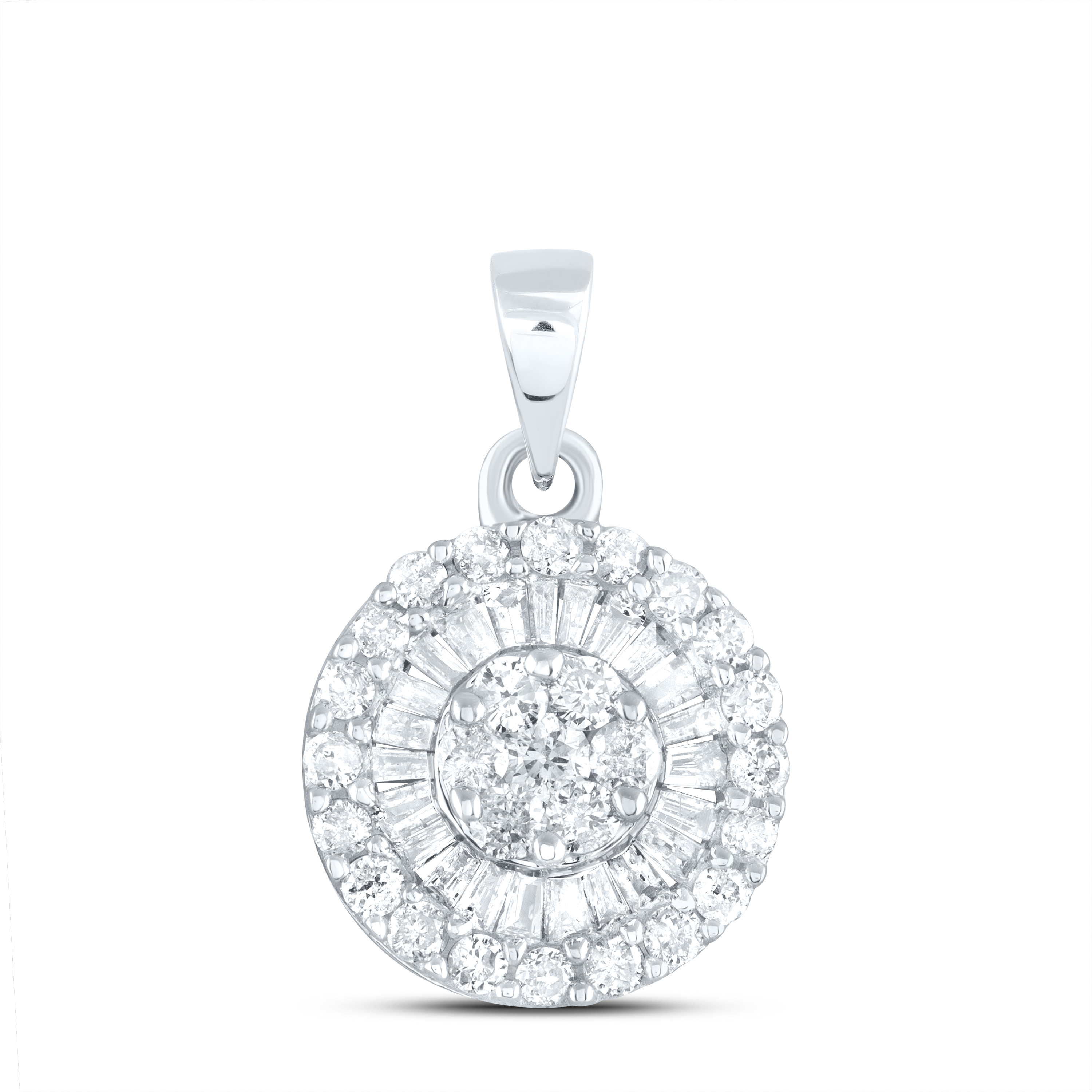 14k White Gold Womens Round Diamond Flower Cluster Circle Pendant 5/8 Cttw