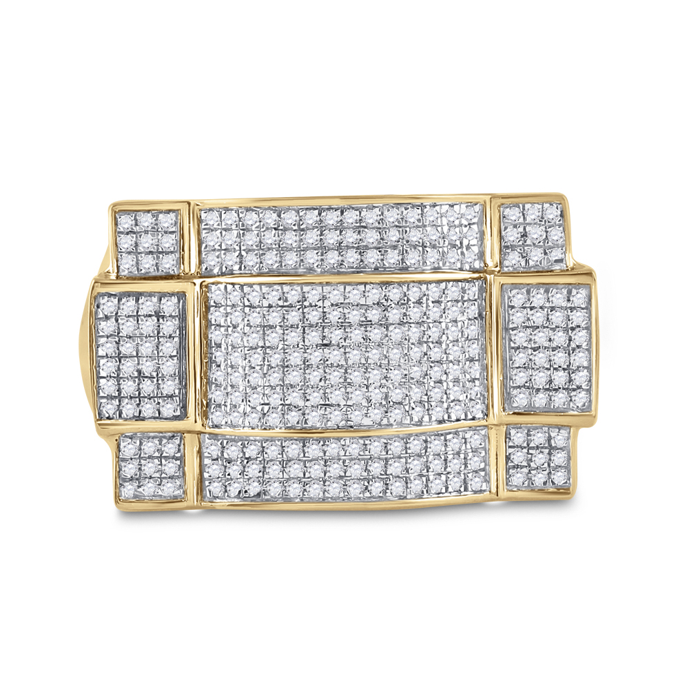 10kt Yellow Gold Mens Round Diamond Contoured Rectangle Cluster Ring 1/2 Cttw