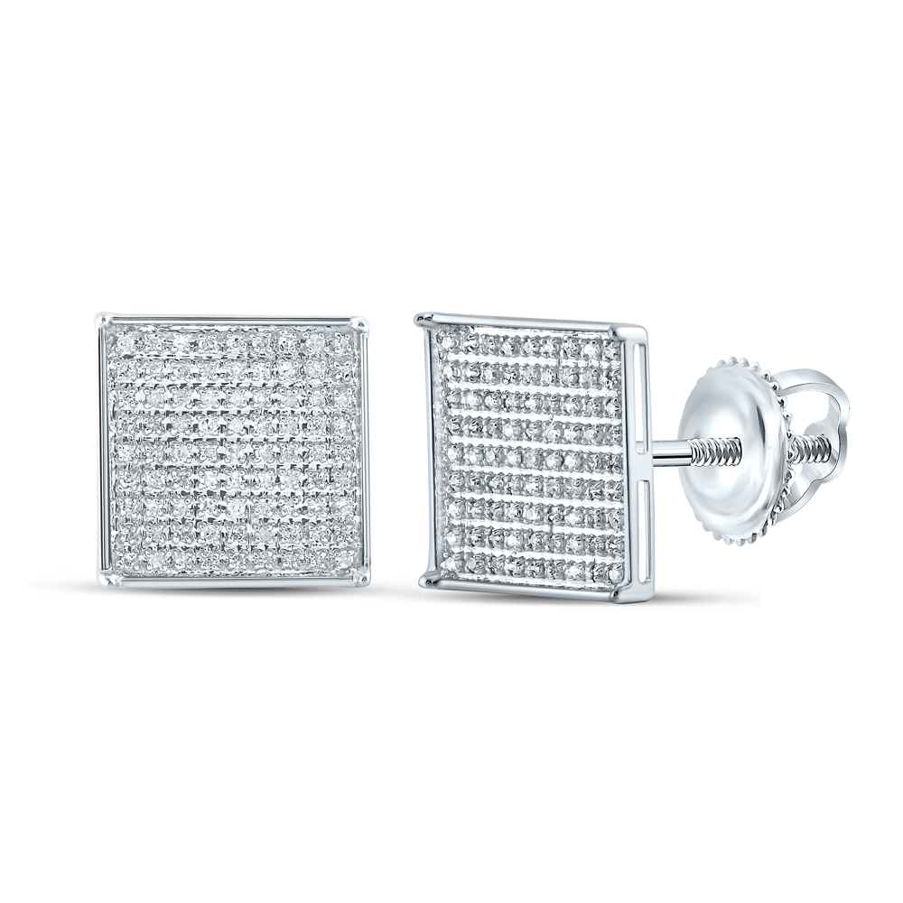10kt White Gold Womens Round Pave-set Diamond Square Cluster Earrings 1/2 Cttw