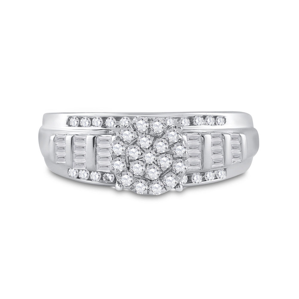 • 10kt White Gold Womens Round Diamond Cluster Bridal Wedding Engagement Ring 1/2 Cttw