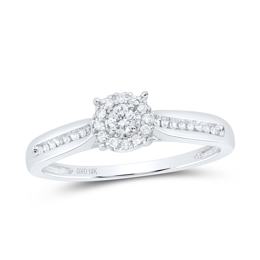 • 10kt White Gold Womens Round Diamond Solitaire Bridal Wedding Engagement Ring 1/6 Cttw