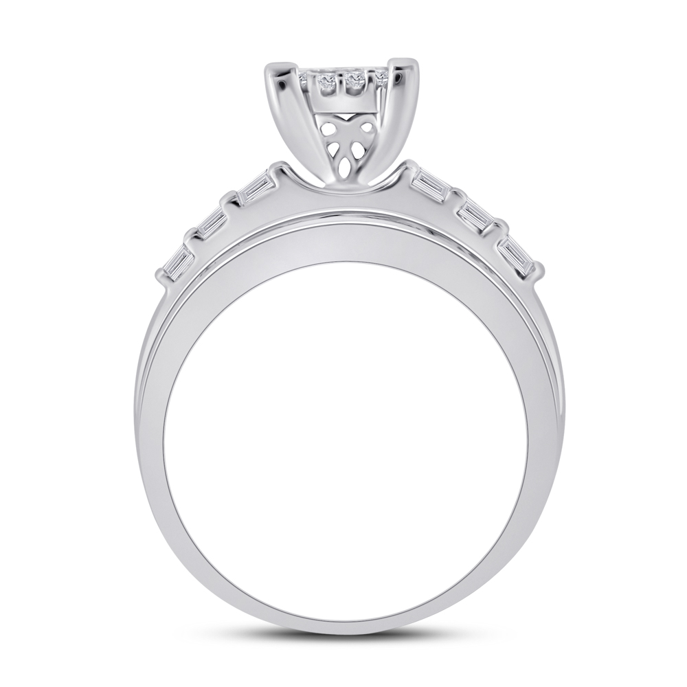 • 10kt White Gold Womens Princess Diamond Cluster Bridal Wedding Engagement Ring 1.00 Cttw