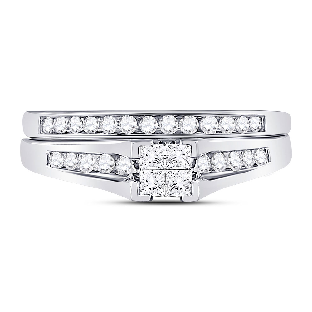 10kt White Gold Womens Princess Diamond Bridal Wedding Engagement Ring Band Set 1/2 Cttw