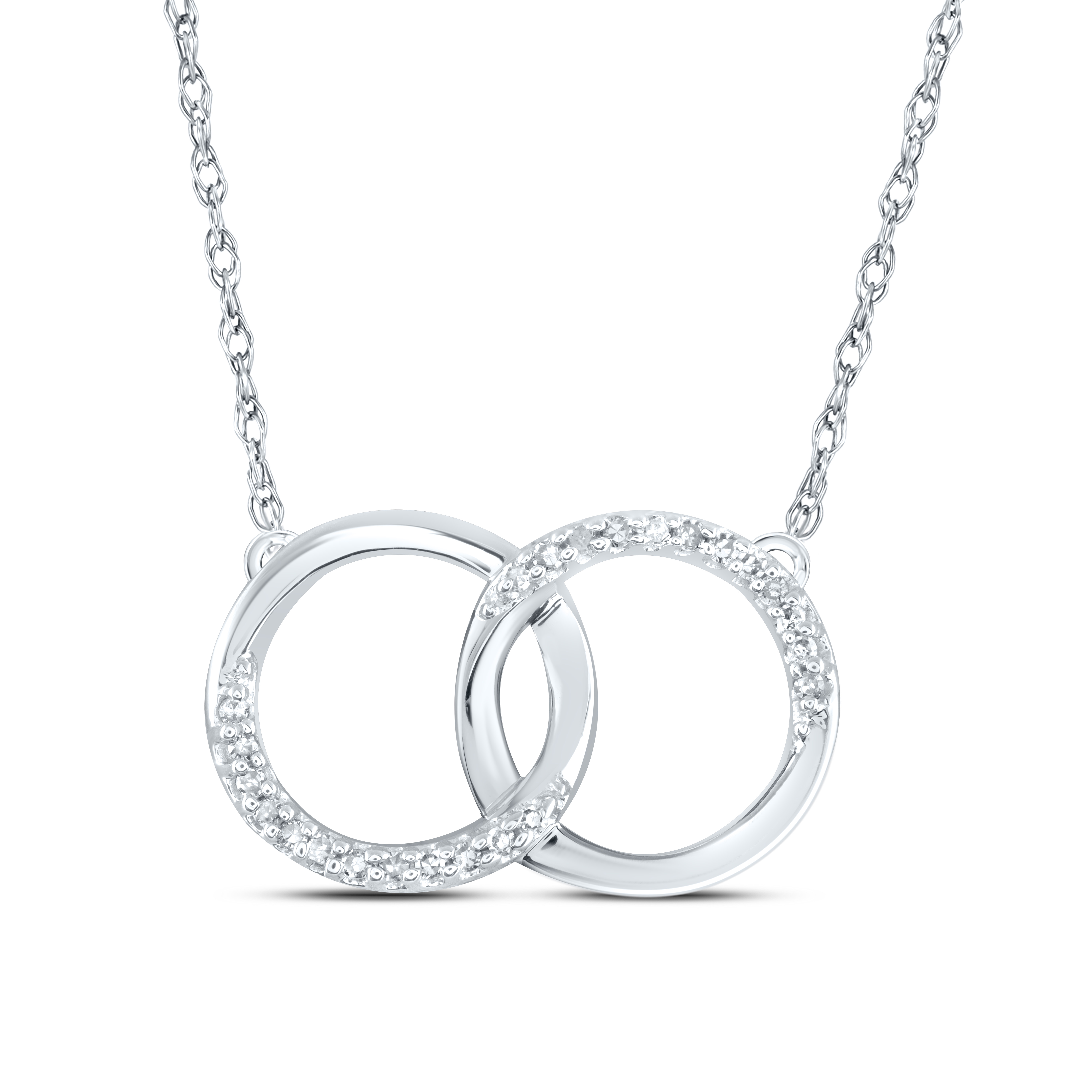 • 10kt White Gold Womens Round Diamond Interlocking Double Circle Pendant Necklace 1/10 Cttw